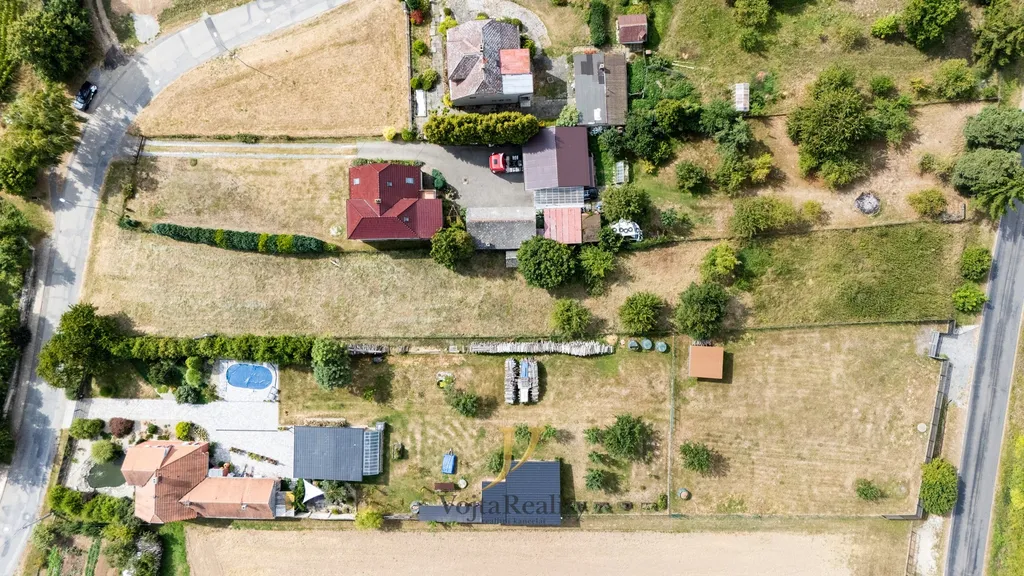 Díky přístupnosti z obou stran pozemku, lze využít maximum šíře pro výstavbu domu na jihovýchodní straně a zbudovat si i případný sjezd do zahrady ze severozápadní strany.