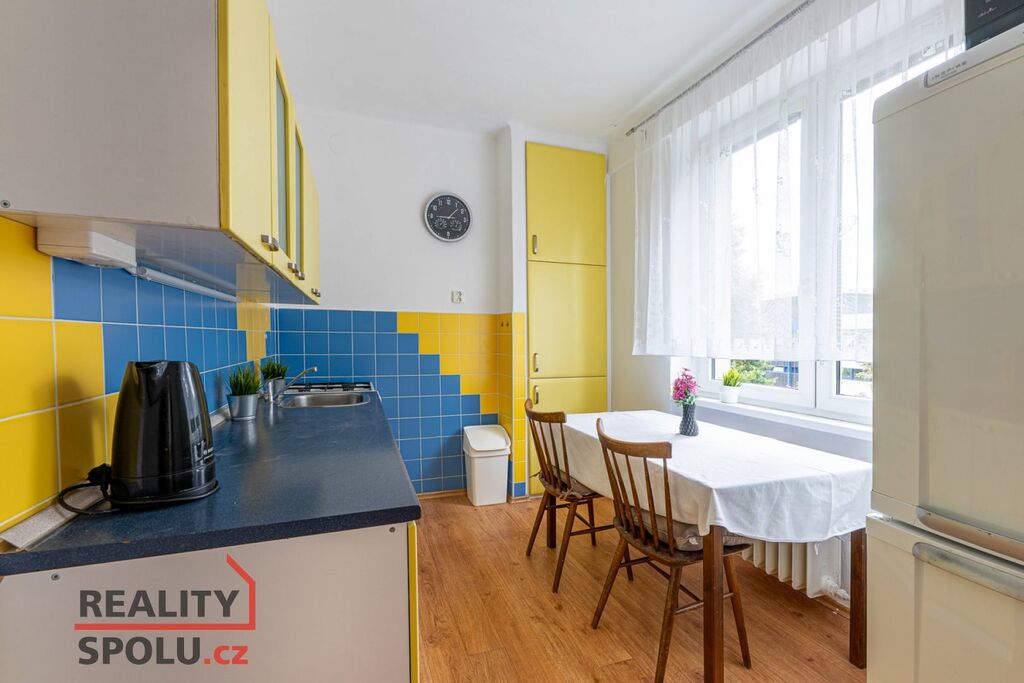 Pronájem bytu 2+1 o výměře 50 m², který se nachází ve 2. nadzemním podlaží panelového domu s výtahem v Plzni–Slovanech, ul. Habrmannova.