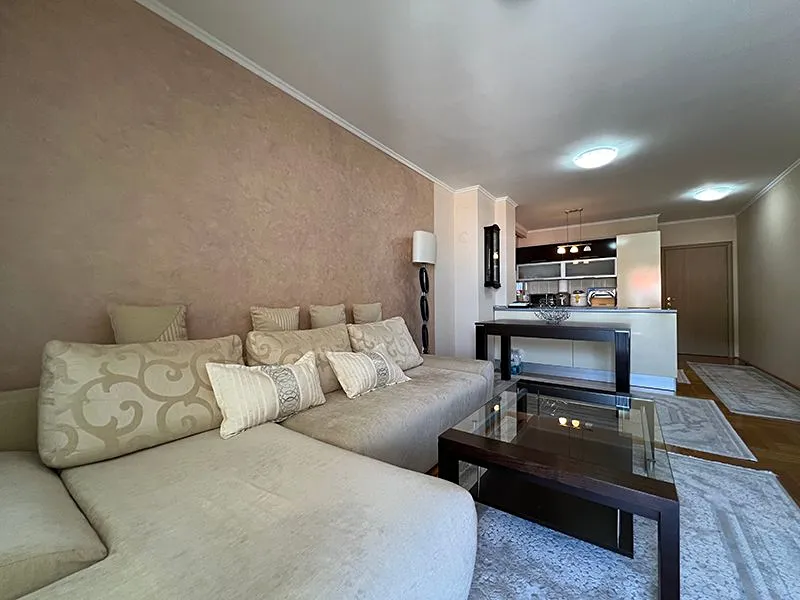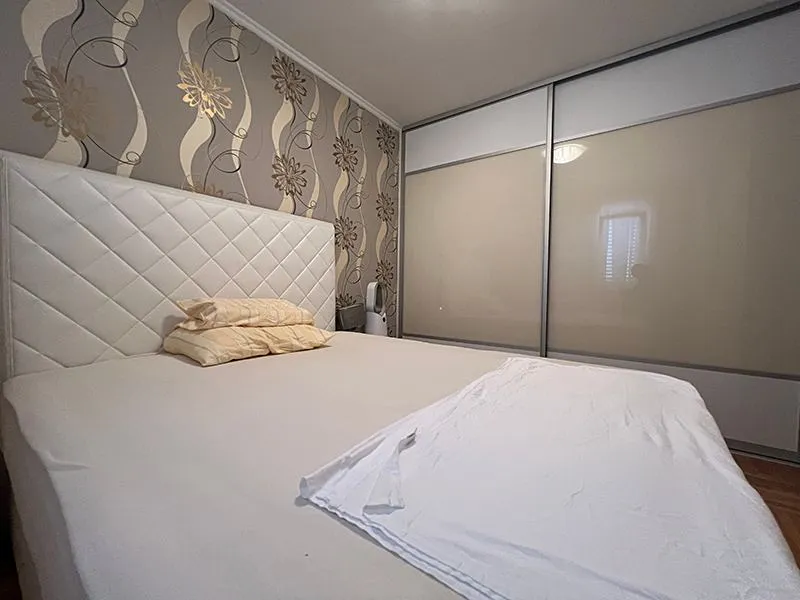 Apartmán o rozloze 68 m2 umístěný ve 3. podlaží budovy sestává z chodby, 2 ložnic, koupelny, toalety, obývacího pokoje s kuchyní a jídelnou se vstupem na západně orientovanou lodžii 6,35 m2, z které je výhled na moře a ostrovy. Apartmán je málo používaný, téměř nový, klimatizovaný a plně zařízeny. Budova se nachází v samém centru Makarské (v blízkosti autobusového nádraží) v místě kde je klid, ideální pro odpočinek a relaxaci. K bytu náleží 1 venkovní parkovací stání a odkládací místnost 4,21 m2 v přízemí domu.