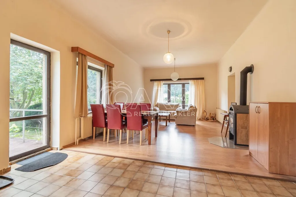 Zmiňovaná nemovitost je zděným domem o 2 nadzemních podlažích, užitné ploše orientačně 204 m2, nacházející se na pozemku o výměře 1676 m2. K domu náleží garáž, do které pohodlně zaparkujete svého motorového miláčka a kůlna, do níž si jistě uložíte spoustu dalších věcí. Ve spodním patře domu se kromě předsíně nachází také ložnice, obývací pokoj, kuchyně, koupelna a oddělená toaleta. Ve druhém nadzemním podlaží naleznete další tři ložnice, z nichž lze udělat například pracovnu či dětský pokoj. Nemovitost je tedy dispozičně cca 5+kk. V dobách minulých dům fungoval jako dvougenerační. Nemovitost je ideální pro rodiny. Přestože se dům nachází u řeky, nenachází se v povodňové zóně, což Vás, jakožto budoucí majitele, jistě potěší. Díky vodnímu dílu Vrané nad Vltavou zde nebyla velká voda ani v roce 2002.