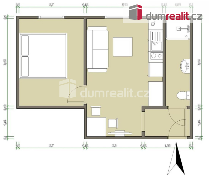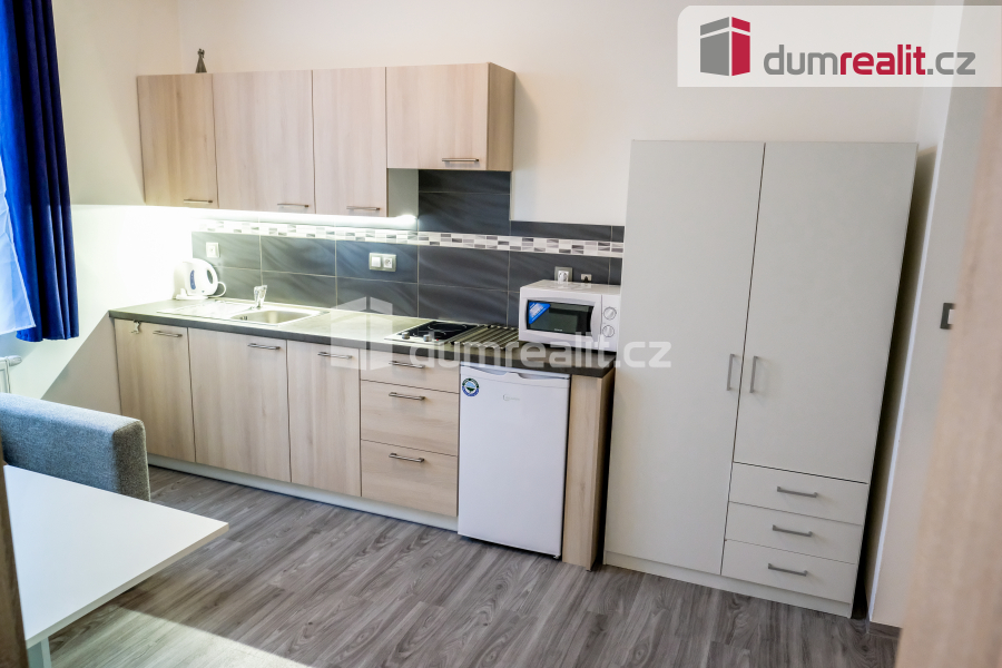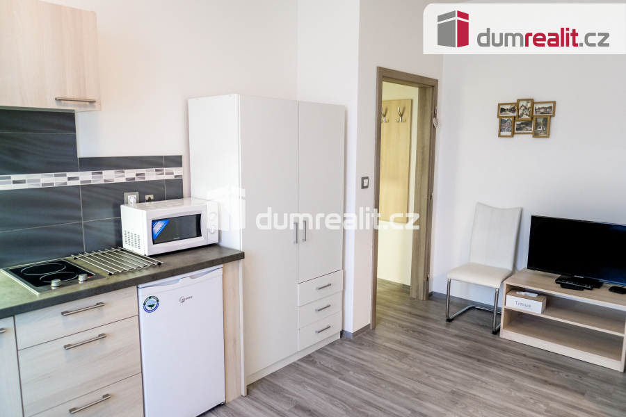 Byt 2 KK ( 1+1) o výměře 30 m² v přízemí domu, je přístupný přes společnou chodbu. Z předsíně navazuje obytná místnost s kuchyňským koutem, vybaveným spotřebiči, jídelním stolem se židlemi a rozkládacím křeslem.