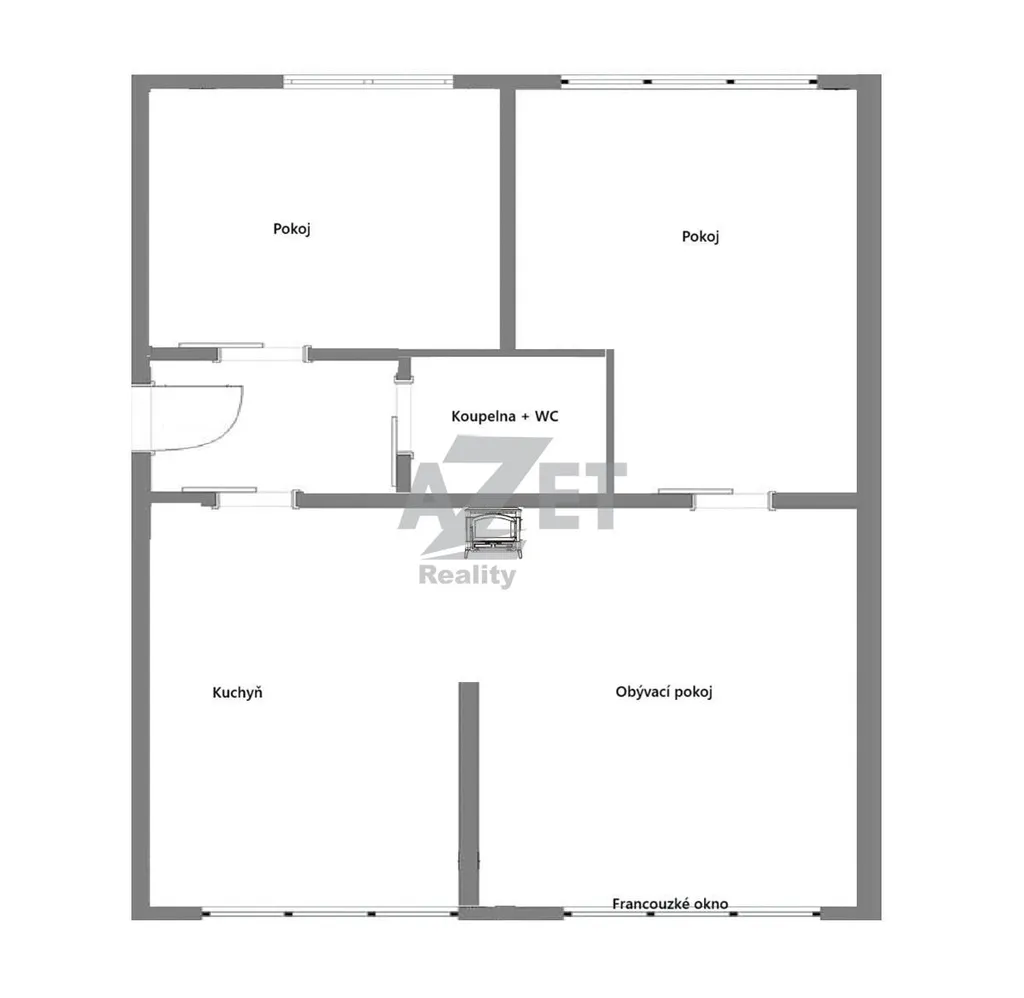 Byt 3+KK, pokoj s kuchyňským koutem, dětský pokoj, ložnice, koupelna s WC, zádveří.