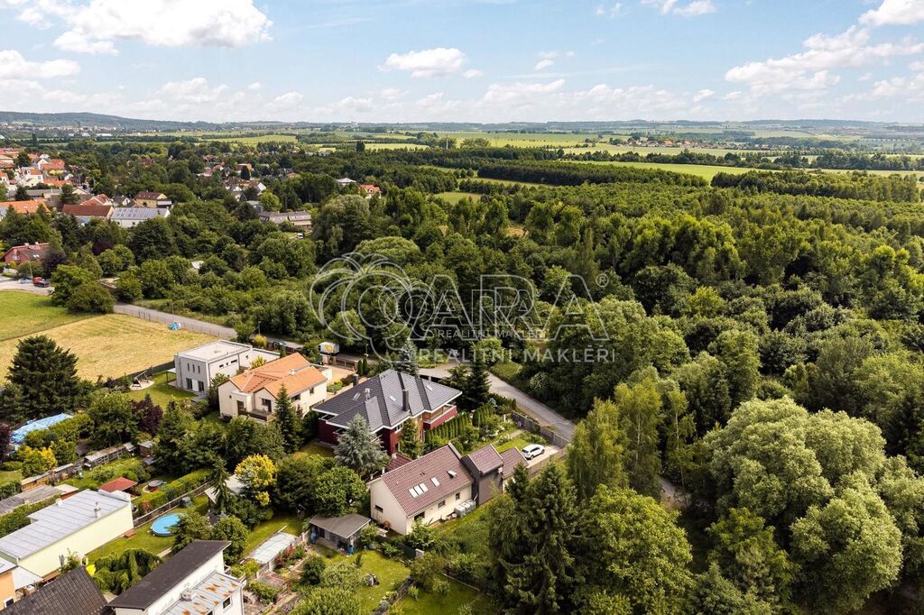 Vila stojí na pozemku obklopeném zelení, na dosah lesa, kde vládne klid a harmonie. Je to prostředí, kde si člověk odpočine, načerpá sílu a přitom má město na dosah ruky.