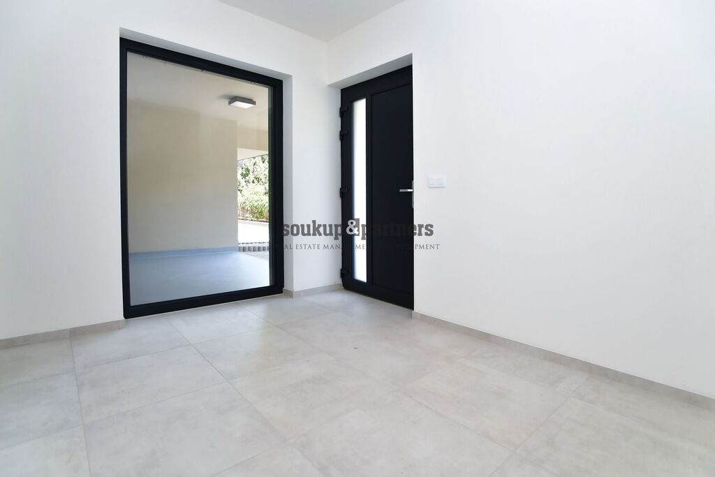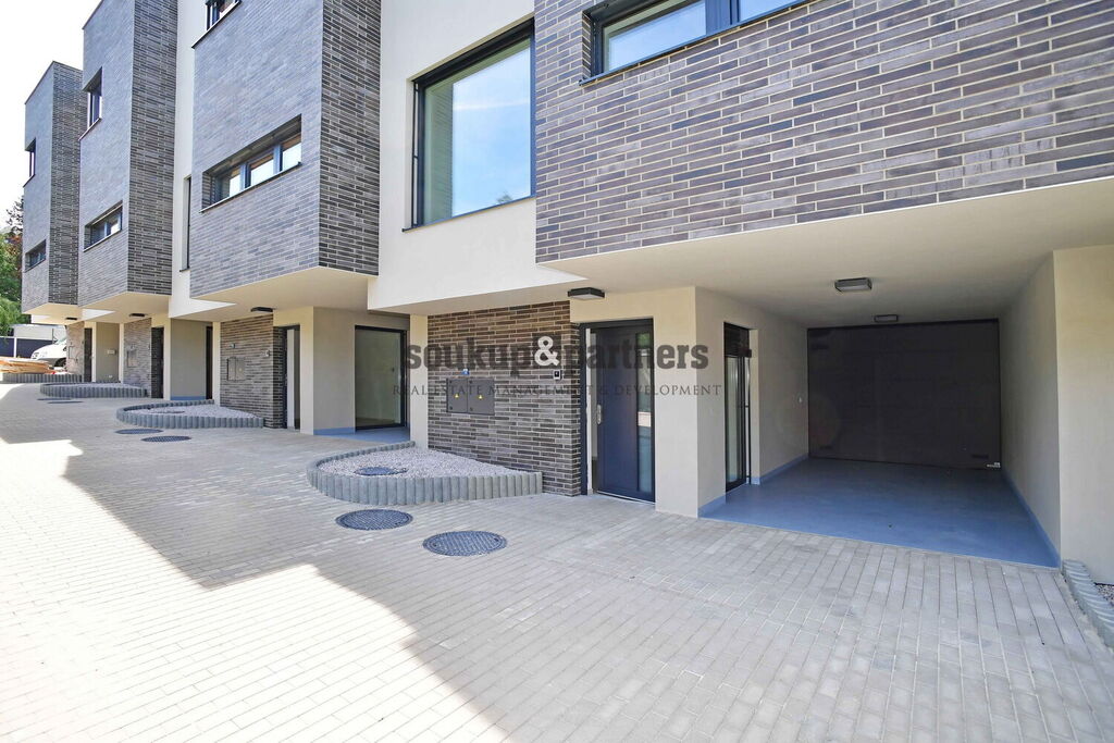Novostavba ŘRD 7+kk + terasa + balkon + garáž a parkovací stání v domě - užitná plocha 220 m2, který se nachází na pozemku o celkové výměře 132 m2 v Praze 4 - Háje, přímo u Hostivařské přehrady s pláží a parkem. Jedná se o dosud neobývanou novostavbu kolaudovanou v roce 2025. V domě jsou 4 samostatné ložnice, 2 x koupelna se sprchovým koutem a vanou, 3x WC, obývací pokoj se vstupem na balkon, kuchyň s jídelnou, moderní kuchyňská linka s vestavěnými spotřebiči - lednice s mrazákem, myčka, horkovzdušná trouba, indukční varná deska, mikrovlnka, digestoř, prádelna, prostorná předsíň. Podlahové vytápění a teplou vodu zajišťuje vlastní tepelné čerpadlo. Okna jsou s izolačním 3 sklem (v 1.NP s bezpečnostním zasklením), na všech oknech předokenní žaluzie na dálkové ovládání, videotelefon v obou patrech, příprava na klimatizaci. V celém domě jsou použity pouze kvalitní a moderní materiály - na podlahách třívrstvé dřevěné dubové podlahy, dlažba, obklady, vypínače Schneider, veškeré zařizovací předměty jsou od firem Laufen, Grohe a Franke, datové zásuvky ve všech obytných místnostech. K domu přísluší zahrada s podzemní nádrží na dešťovou vodu, dřevěná venkovní terasa je z materiálu Thermowood s venkovní zásuvkou a nezámrzným kohoutem na vodu. Samostatný vjezd pouze pro rezidenty 5 RD přes závoru na dálkové ovládání. Poloha RD přímo u Hostivařské přehrady s pláží, volejbalovým hřištěm a parkem s cyklostezkami a tenisovými kurty zajišťuje sportovní vyžití pro každého vyznavače sportu. V docházkové vzdálenosti je stanice metra Háje, stanice autobusů, mnoho obchodů a restaurací, několik základních škol a školek, banky a zdravotní střediska. V tomto RD jste blízko krásné přírody, ale máte i veškeré vymoženosti moderního bydlení.