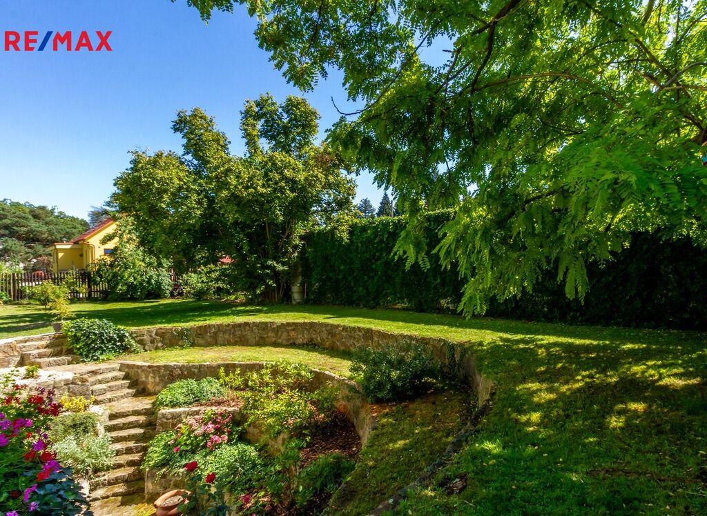 Rozlehlá zahrada o výměře 1 100 m² poskytuje dostatek soukromí i prostoru pro odpočinek. Oplocení z akátového dřeva garantuje dlouhou životnost bez nutnosti údržby. Praktickým doplňkem je velký krytý přístřešek pro dvě auta včetně vozu typu mikrobus.