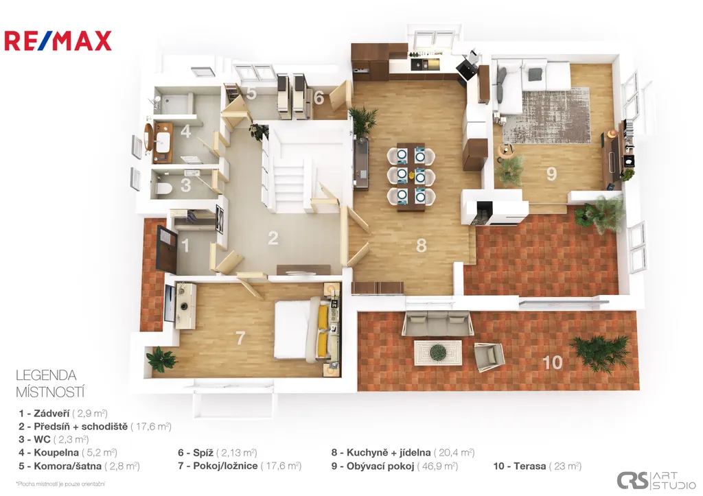 terasa o velikosti 23 m² vhodná pro posezení a relax