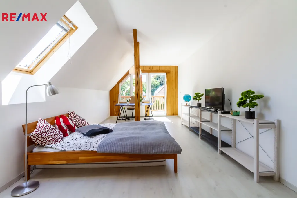 ložnice s vlastní šatnou nebo přípravou na samostatný kuchyňský kout