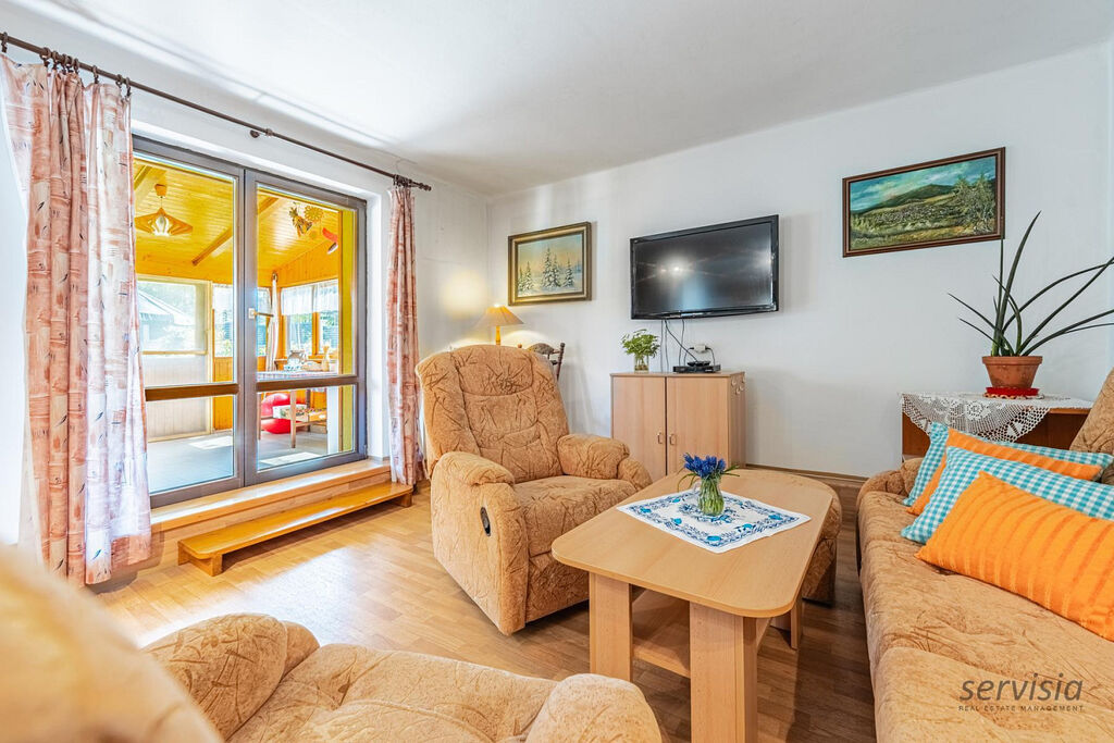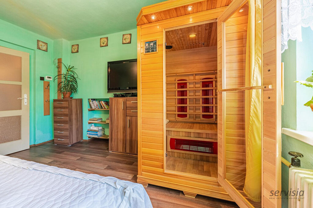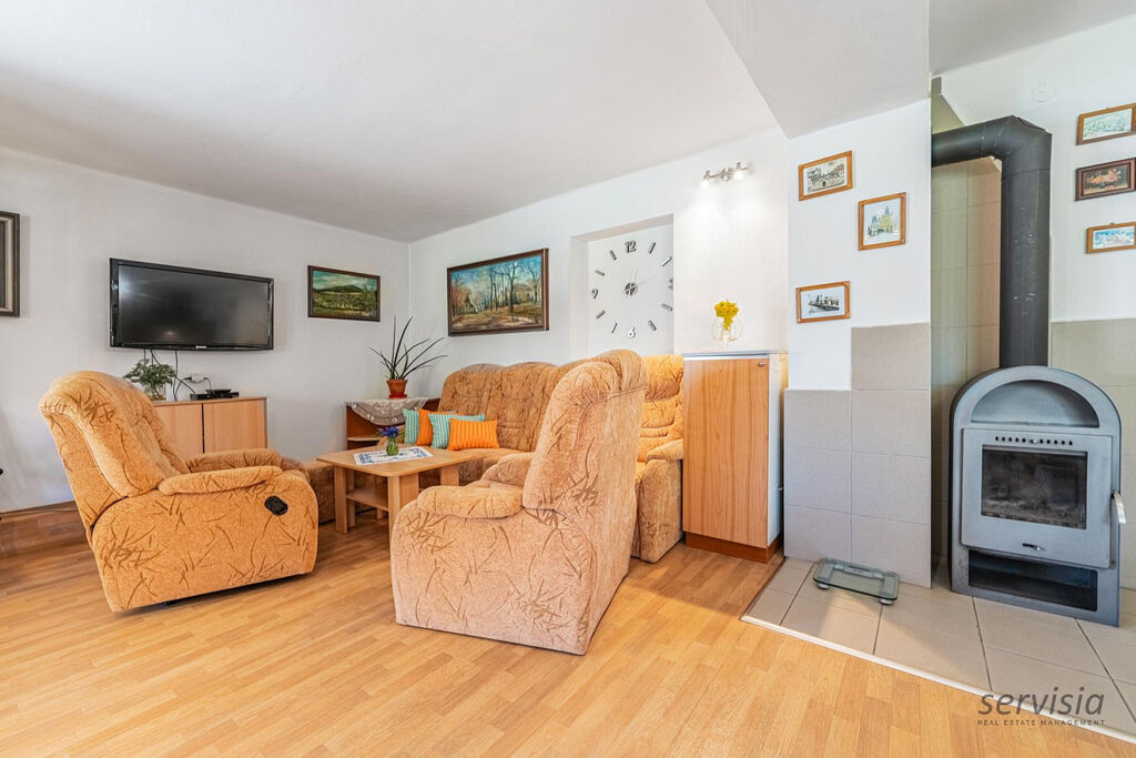 V přízemí vás přivítá útulný obývací pokoj s krbovými kamny, které dodávají interiéru příjemnou atmosféru. Z obývacího pokoje je přímý vstup na prosklenou, uzavřenou terasu o velikosti 12 m² ideální pro ranní kávu, posezení s přáteli nebo relaxaci.