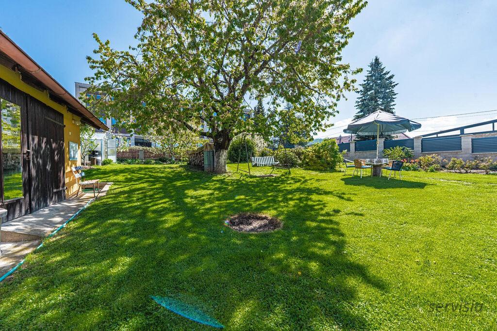 Na pozemku o celkové výměře 1173 m² se nachází udržovaná zahrada o rozloze 918 m², která nabízí dostatek soukromí a prostoru pro odpočinek i zahradničení. Nechybí zde zděná garáž (21 m²) se skladem, dřevník a prostorný letní domek s dílnou ideální pro kutily, podnikání z domova nebo letní hosty. Letní domek je také napojen na obecní vodovod a kanalizaci, vybaven samostatnou toaletou a částečně podsklepen.
