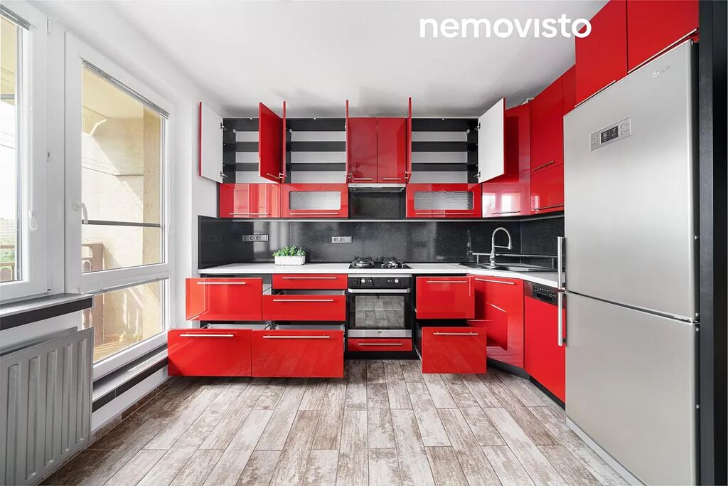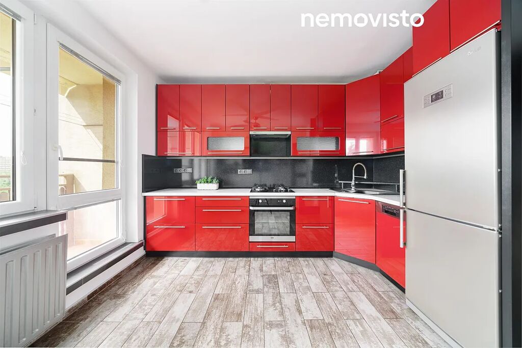 Mám pro vás Ideální byt pro rodinu s dětmi, který je připraven k okamžitému nastěhování. Středobodem bytu je kuchyně. Díky svému uspořádání máme velkou rohovou kuchyňskou linku a jídelní stůl pro čtyři osoby. Linka je vybavena vestavnými spotřebiči (plynová varná deska, trouba, myčka nádobí) a samostatnou lednicí. Zajímavostí je drtič odpadu a filtr na pitnou vodu. Využít můžete prostorný balkón.