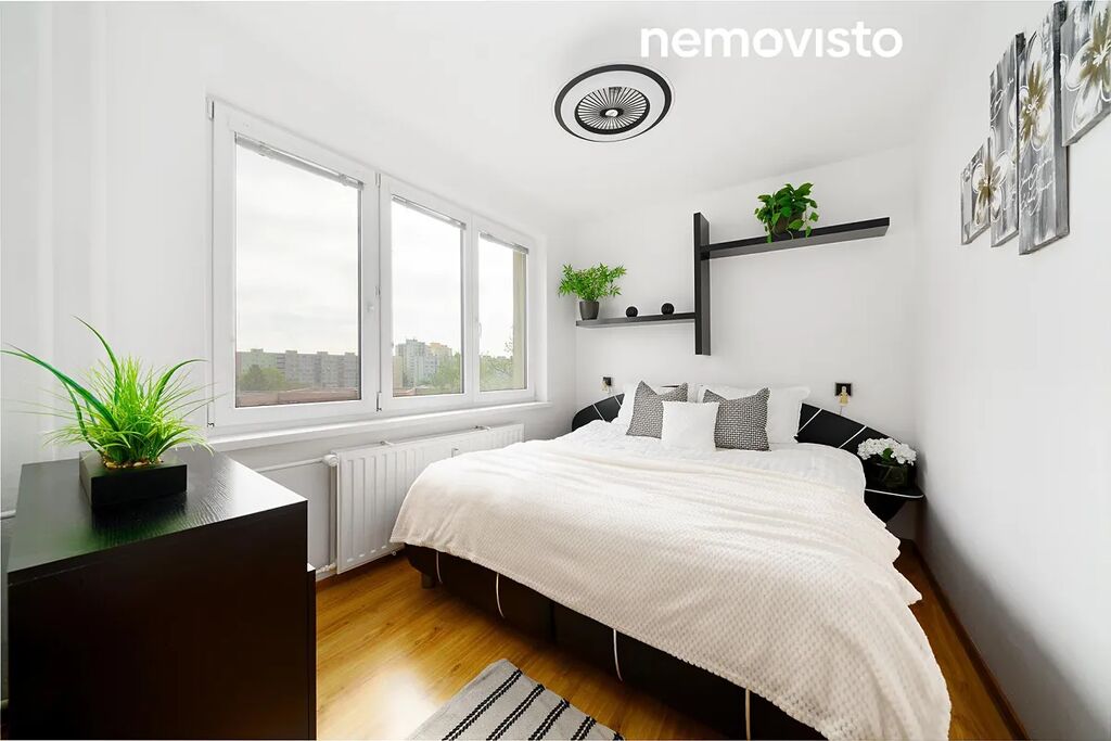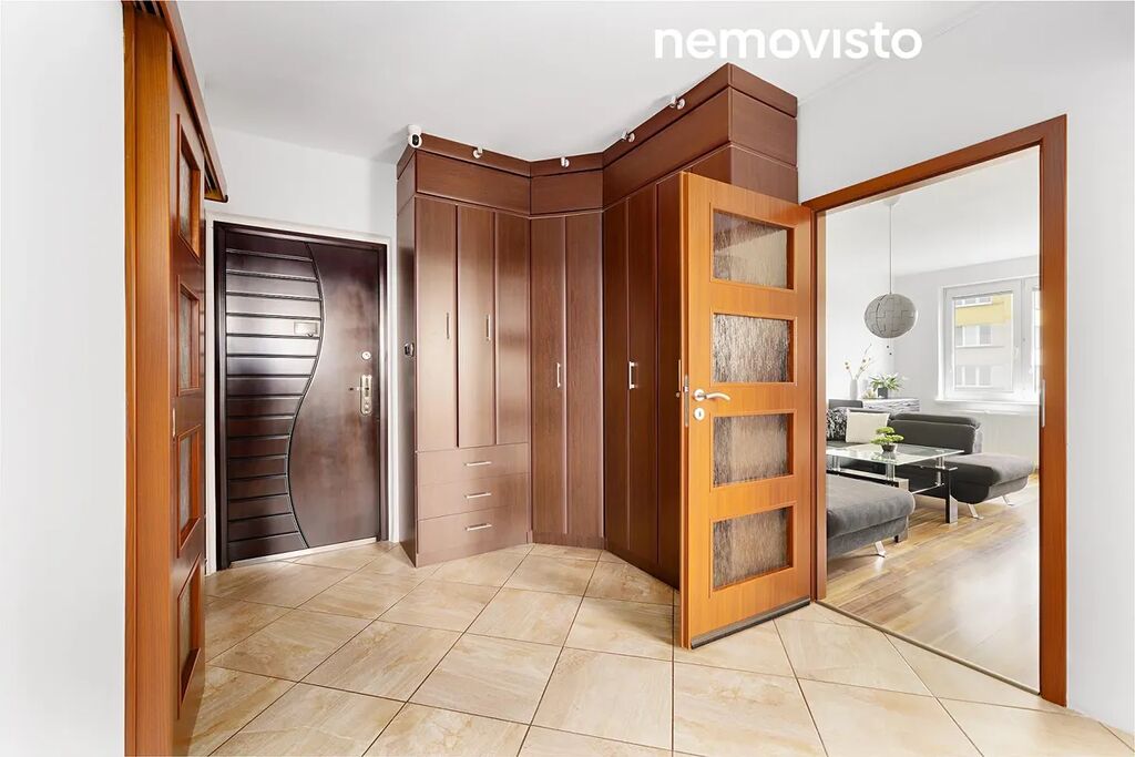 V rámci rekonstrukce byla zvětšena koupelna, takže se našlo místo na velký sprchový kout, kombinovaný s vanou a prostor pro pračku a sušičku. V chodbě jsou praktické vestavěné šatní skříně. Pokoje jsou vybaveny nábytkem včetně nové sedací soupravy nebo televize. Byt je prodáván s nábytkem, ale pokud někomu nevyhovuje, zařídíme vystěhování. Dětský pokoj má vstup z chodby, takže hlučná návštěva nebude vaše nejmenší rušit. Naopak ložnice má vstup z obývacího pokoje. Vybavení bytu je možné ponechat dle dohody.