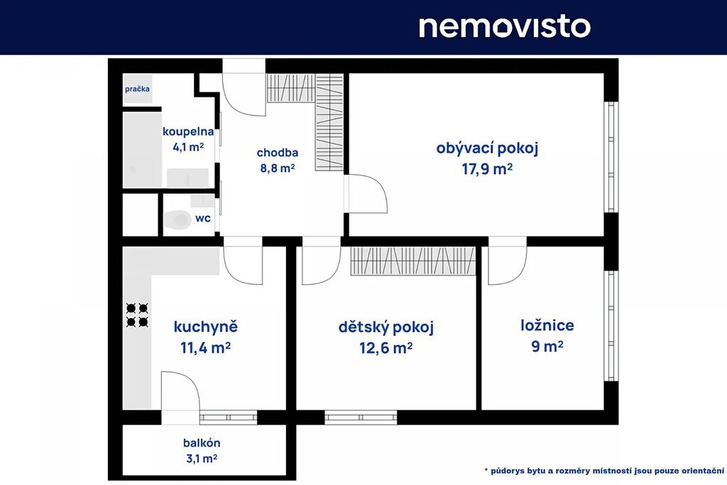 - prostorná koupelna s místem pro pračku