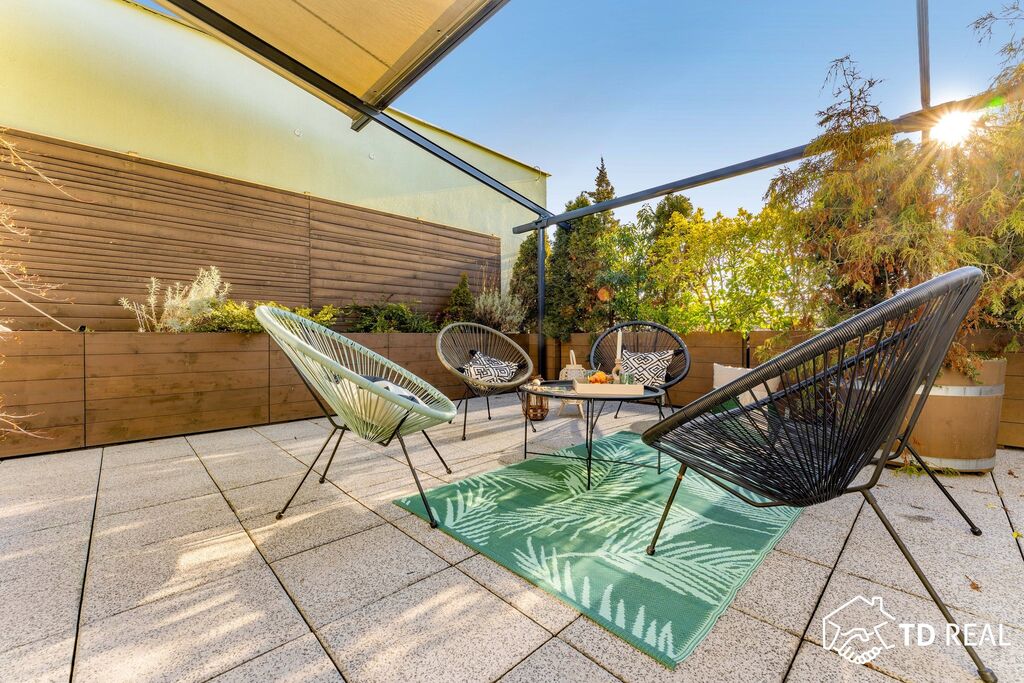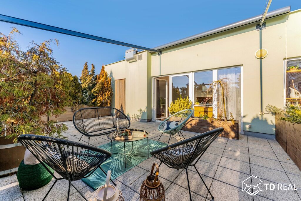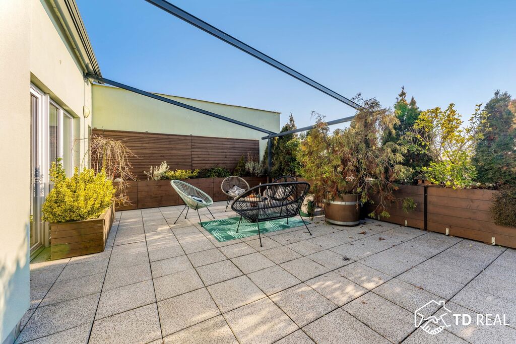 K tomu navíc disponuje prostornou terasou o velikosti 47 m², která nabízí absolutní soukromí pro relaxaci i posezení s přáteli.
