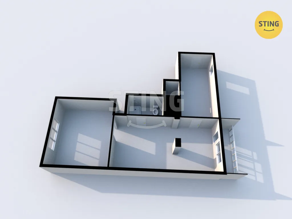 Jednotka prošla částečnou rekonstrukcí. Koupelna a WC dohromady. Z chodby vstup do kuchyně a poté do pokoje. Výhled z bytu na 2 strany. Okna v pokoji a na chodbě jsou původní, balkónové dveře jsou plastové.