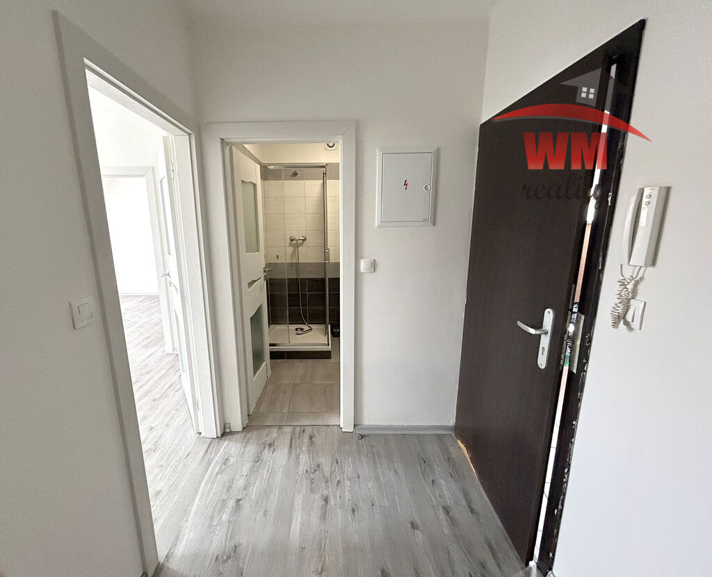 Byt je ve velmi pěkném stavu a sestává z předsíně, koupelny se sprchovým koutem a WC, dále vcházíme do velké kuchyně, kterou lze spojit s obývacím prostorem a poslední místností je pokoj.