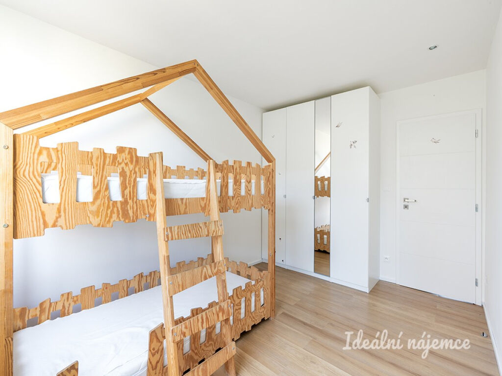 Byt je vybavený, takže se můžete pohodlně nastěhovat bez nutnosti složitého zařizování. Kuchyně disponuje lednicí s mrazákem, elektrickou troubou, plynovým sporákem, digestoří a myčkou. Obývací část nabízí dostatek prostoru například pro jídelní kout a sedací soupravu. V ložnici je k dispozici pohodlná manželská postel a úložné prostory, další samostatný pokoj je vybaven dětskou poschoďovou postelí a může sloužit jako dětský pokoj či pracovna. Koupelna je zařízena sprchovým koutem, umyvadlem, koupelnovou skříňkou a pračkou, toaleta je umístěna samostatně.