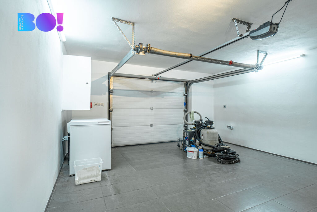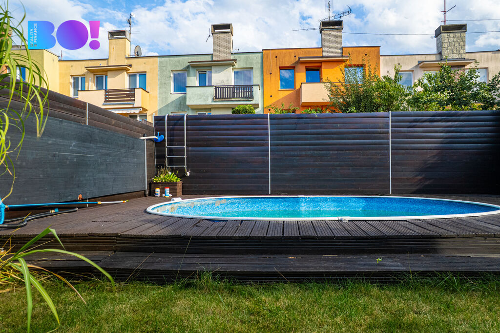 Exteriér domu zdobí nová fasáda, kryté parkovací stání, bazén a zahrada, která je nenáročná na údržbu. Díky tomu si tu budete užívat spíše odpočinek a společné chvíle u bazénu, než nekonečné hodiny práce.