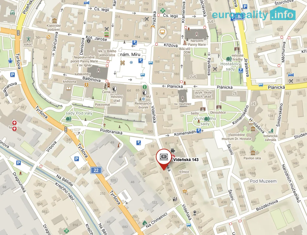 Nemovitost se nachází přímo u náměstí, což představuje ideální polohu s veškerou občanskou vybaveností na dosah ruky.