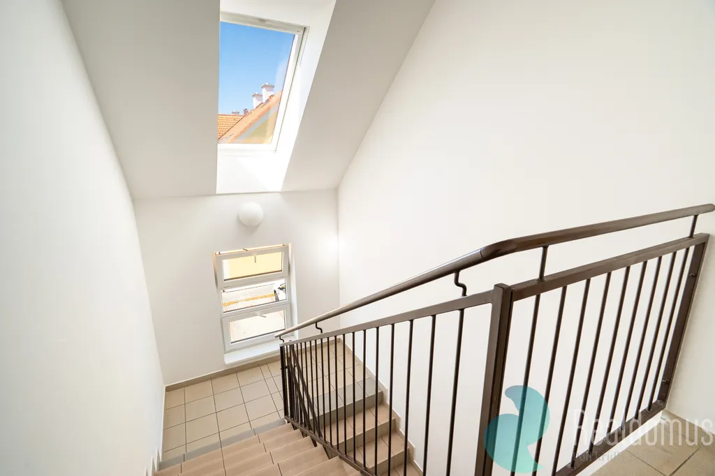 Byt se nachází ve druhém patře/podkroví malého zděného domu a nabízí komfortní a klidné bydlení s výbornou dostupností do města. Dispozičně je byt velmi prakticky řešen, najdeme zde velkorysý obývací pokoj s moderním kuchyňským koutem (31,6 m²), dvě ložnice (19,7 m² a 15,63 m²), koupelnu s vanou (4,4 m²), samostatnou toaletu (1,87 m²) a předsíň (7,7 m²). Kuchyňská linka je vybavena troubou, varnou deskou, digestoří a mikrovlnnou troubou.