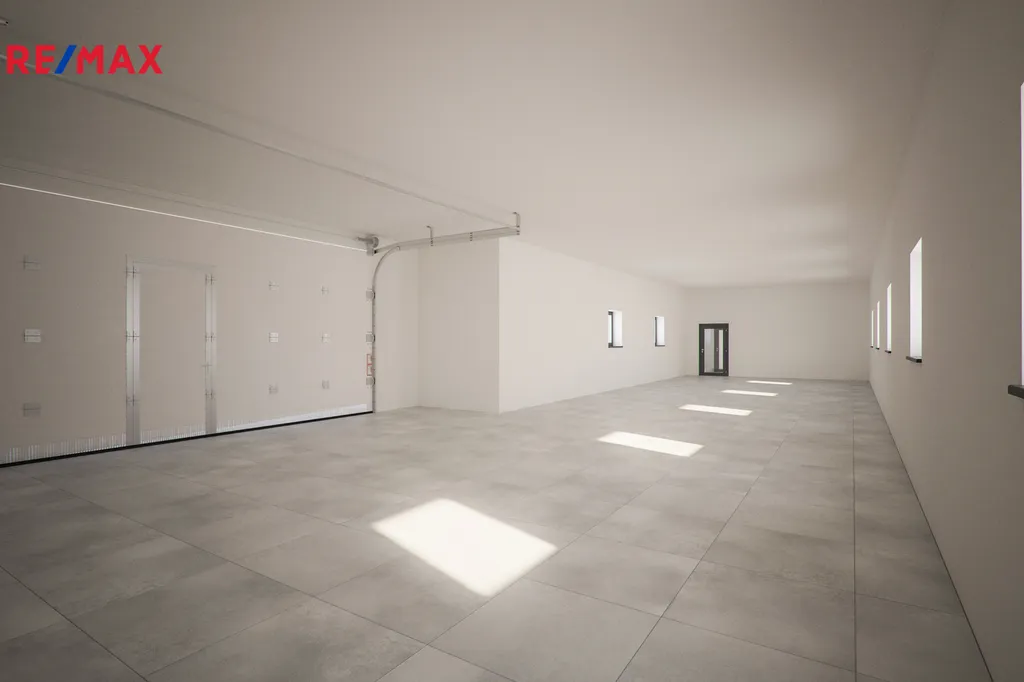 V areálu se nachází přístřešek o výměře přibližne 100 m2, dále uzavřená garáž o výměře cca 100 m2, vhodná např. jako dílna. Jedná se o objekt bývalých stavebnin, tudíž je vhodný např. na parkování aut, skladování materiálu atd. K těmto prostorům náleží zázemí s kanceláří ( vhodné např. jako dispečink) o výměře 35 m2.