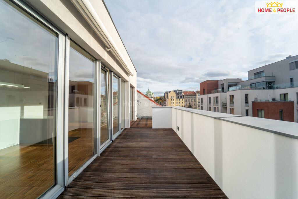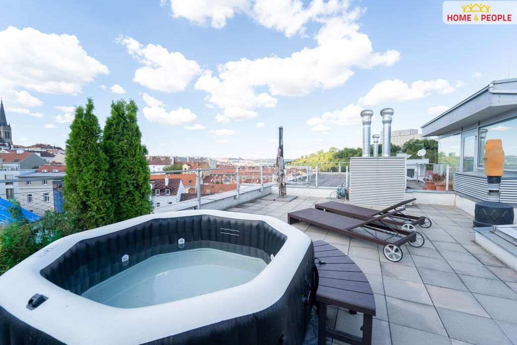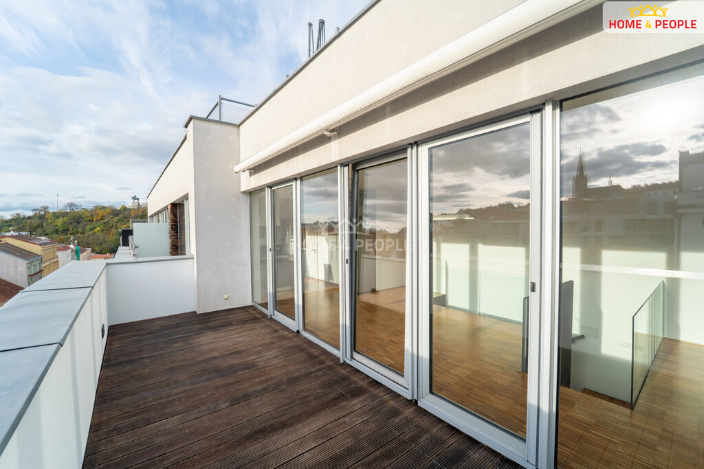 Nabízíme k prodeji výjimečný mezonetový byt 4+kk o podlahové ploše 139 m², nacházející se v 6. a 7. nadzemním podlaží prestižní Rezidence Prokopova. K bytu náleží rozsáhlé venkovní plochy – terasy a balkony o celkové výměře 97 m², včetně exkluzivní střešní terasy 59 m² v 8. NP s dechberoucím panoramatickým výhledem na celou Prahu a Pražský hrad.