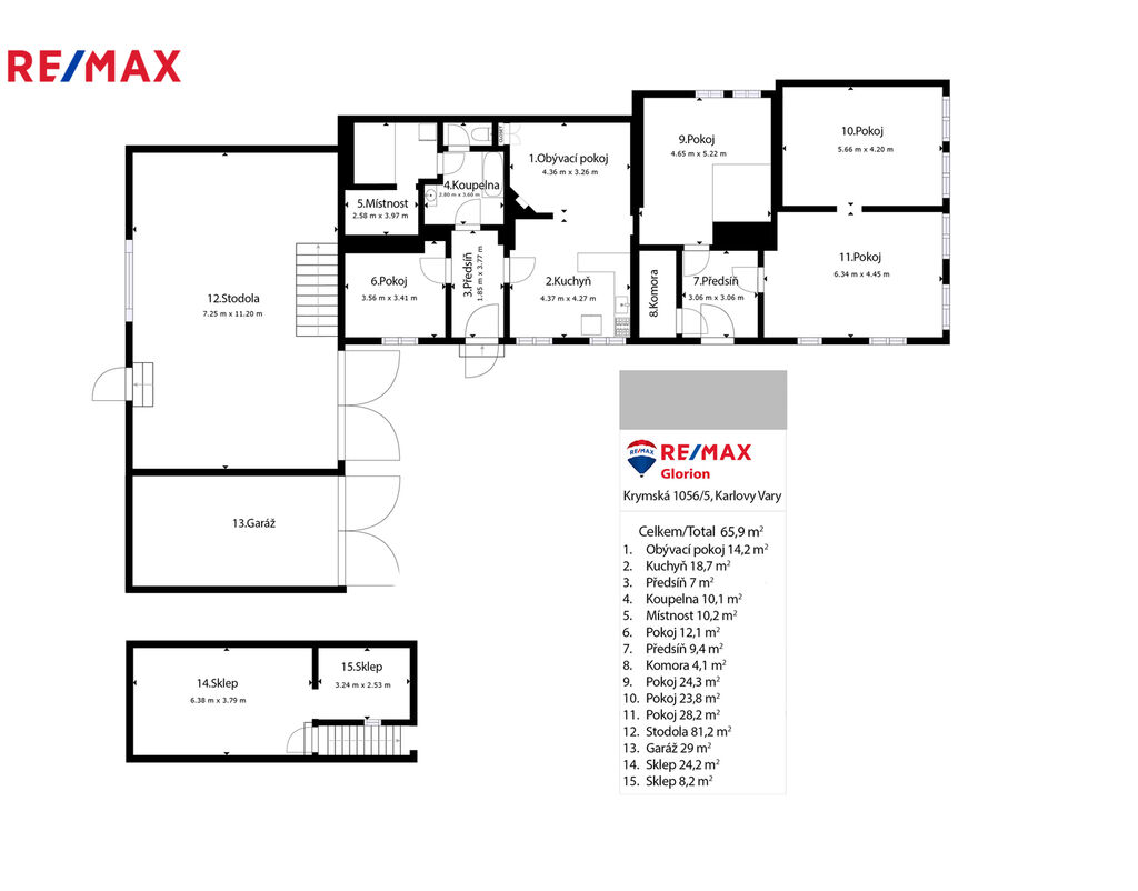 Největší budovou je prostorná stodola o přízemní ploše 81m2, která se dá předělat na luxusní obytnou dvoupodlažní část (zasahující i nad nynější obytné místnosti) nebo využít jako prostory pro podnikání. Ke stodole patří i garáž a podzemní sklep – ideální pro vlastní vinný sklípek nebo uskladnění potravin. Na pozemku se v neposlední řadě nachází ještě samostatná dřevěná stavba, využívaná jako kůlna na zahradní nářadí i jako dílna.