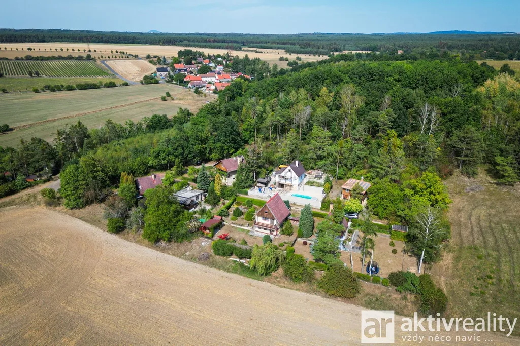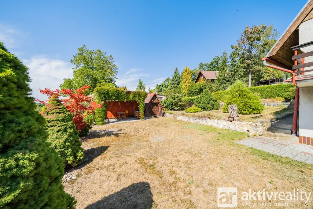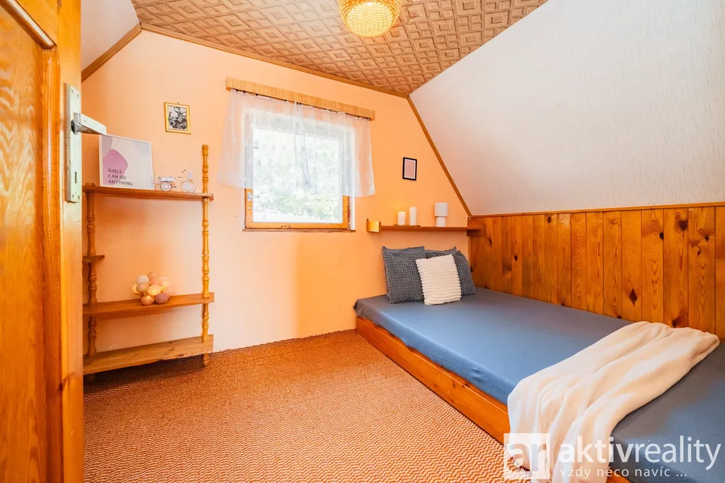 Prodej rekreační chaty na klidném místě v Ješovicích, jen pár set metrů od hranice Kokořínska. Podrobné informace najdete na webu viz video. Stojí v malé osadě sedmi chat, takže je tu soukromí a minimum ruchu. Zahrada je orientovaná na jihozápad, odpoledne sem jde slunce a večer si užijete západy. Z příjezdové cesty se vjíždí přímo na zpevněnou plochu na pozemku, kde je parkovací stání u chaty. U domu je pergola s posezením a hezký výhled do krajiny. Dispozice má tři podlaží a funguje velmi prakticky. Suterén má vlastní vstup přímo do zahrady, je zde kuchyně, koupelna s toaletou, sklad a menší dílna. První nadzemní podlaží je přístupné z horní části zahrady a z úrovně cesty, tvoří ho prostorný obývací pokoj s krbem, malá kuchyňka, toaleta a komorní ložnička. Z tohoto podlaží se vychází na terasu. V podkroví jsou dvě ložnice a úložný prostor, takže se sem pohodlně vejde i větší rodina nebo parta přátel. Stavba je zděná z pórobetonu a působí poctivě a útulně. Lokální vytápění krbem a kamny vytváří příjemnou atmosféru pro víkendová i delší pobytová setkání. Hledáte chatu s hezkou zahradou, praktickým členěním a rychlým přístupem do přírody Kokořínska? Tady máte klidné zázemí, které je připravené sloužit hned a dá se dál rozvíjet podle vašich představ. Podrobné informace najdete na webu viz video.