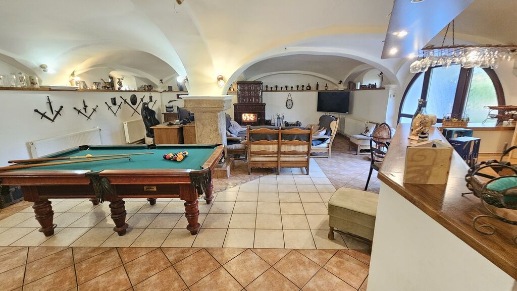 Okolí domu nabízí zázemí, jaké v podobných nemovitostech jen tak nenajdete. Bazén a vířivka zvou k relaxaci, velká travnatá plocha je ideální pro hry dětí i dospělých. A když budete mít chuť na sport, stačí vyjít k tenisovému kurtu, beachvolejbalovému hřišti, kuželkám nebo basketbalovému plácku. U kurtu stojí ještě menší domek s dispozicí 1+1 s balkonkem – ideální pro hosty nebo třeba na samostatný pronájem.
