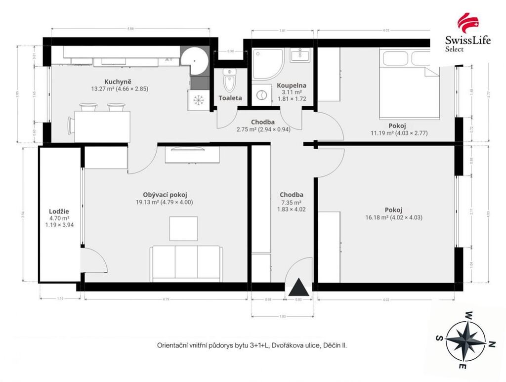 Prodej bytu 3+1, Děčín, Dvořákova, 73 m2