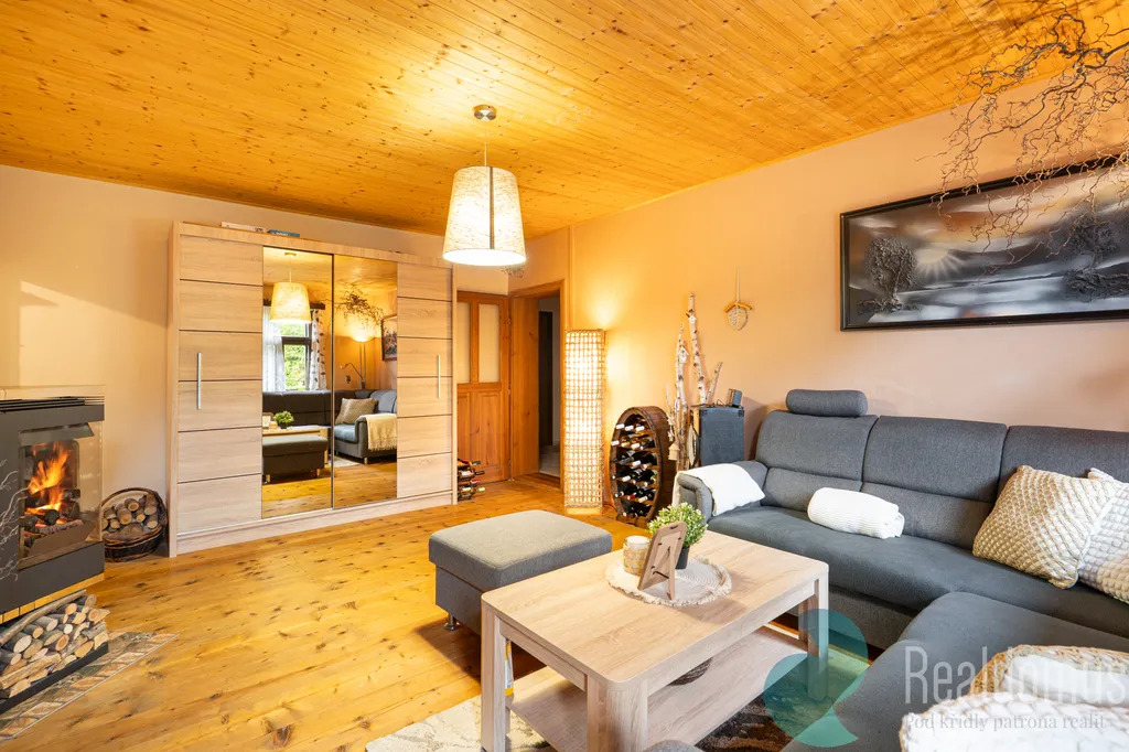 • Prostorný obývací pokoj s krbovými kamny