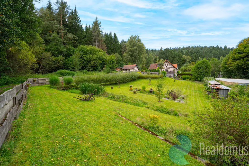 REALDOMUS nabízí ve výhradním zastoupení majitele k prodeji rodinný dům na okraji obce Nahořany nedaleko Českého Krumlova. K domu o dispozici 4+1 náleží krytá veranda, útulná terasa a rozlehlý pozemek, který nabízí nejen dostatek soukromí, ale i prostor pro odpočinek nebo aktivní trávení volného času. Zahrada s menším jezírkem a řadou příjemných zákoutí je ideálním místem pro relaxaci či rodinné posezení. Praktickým bonusem je samostatná dílna, která potěší každého kutila nebo tvořivého ducha.