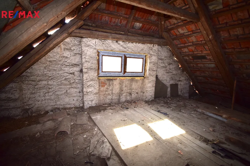 Součástí domu je rozsáhlé podkroví po celé jeho délce, které doslova vybízí k dalšímu využití. V jedné části je díky dostatečné výšce trámů prostor připravený k okamžité přeměně na útulný pokoj, a navíc je zde možnost vybudovat elegantní schodiště přímo ze spodní místnosti.