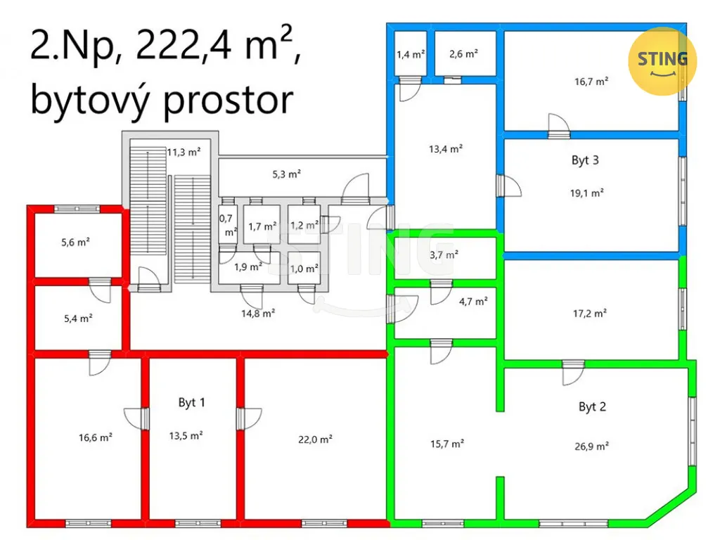 V přízemí se nacházely komerční prostory (restaurace U Sluníčka), v 1. patře jsou 3 bytové jednotky 2+1. Možnost půdní vestavby a přístavby ve dvoře.