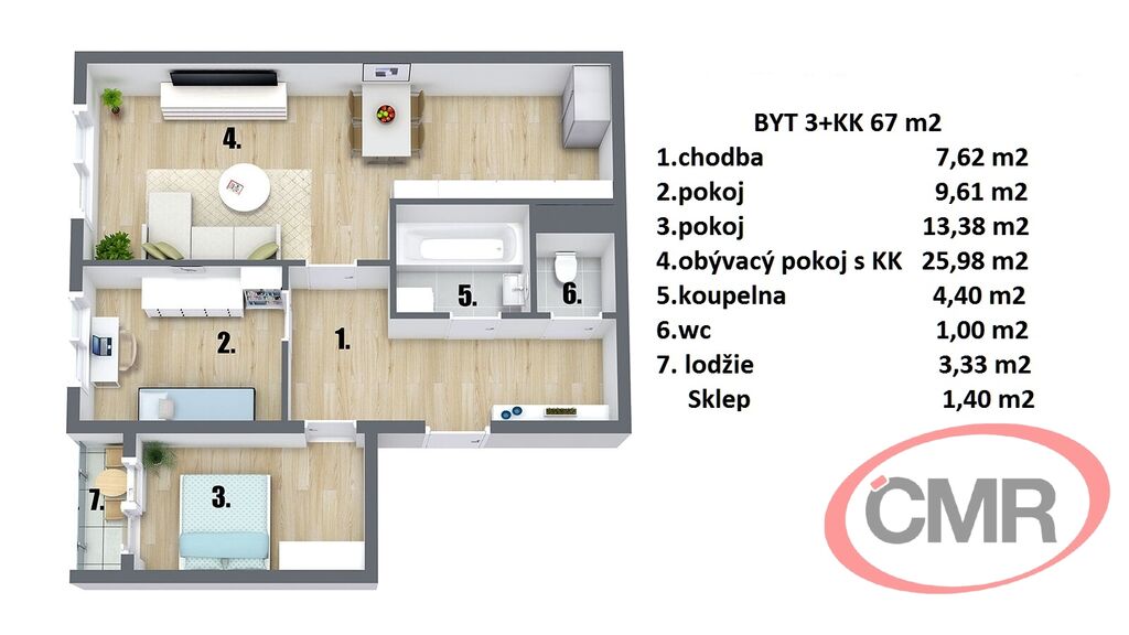 Prostorné 3+kk/L 67 m2 v 7 N.P. zrekonstruovaného panelového domu, Praha 4 - Chodov ( nová fasáda, výtah). Vybavení bytu - plastová okna, kuchyňská linka včetně spotřebičů, koupelna se sprchovým koutem a samostatná toaleta. Zachovalý stav bytu s krásným výhledem do přírody, byt má celkovou podlahovou plochu 67 m² (z toho užitná plocha 62 m² + lodžie 3,3 m² + sklep 1,4 m²). Lokalita nabízí plnou občanskou vybavenost. Ať už děti či dospělí, každý najde vše potřebné na dosah ruky. Nákupní možnosti v široké paletě jsou v docházkové vzdálenosti a k tomu i centrální park s řadou atrakcí, kde můžete trávit volný čas. Na nejbližší zastávku MHD, metro C - Opatov se dostanete za pár minut pohodlnou chůzí a dále pak komfortně kamkoliv budete potřebovat. Doporučuji osobní prohlídku.