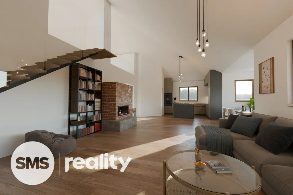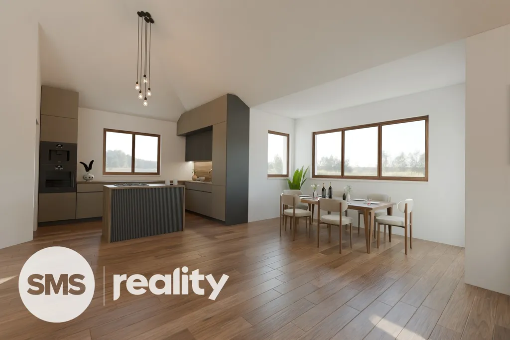 V přízemí domu se nachází velkorysý obývací pokoj s kuchyní a jídelnou, tři ložnice, praktická spíž a technická místnost. Podkroví nabízí další obytný prostor vhodný například pro pracovnu nebo pokoj pro hosty. Součástí domu je také garáž, která pojme i větší vůz.