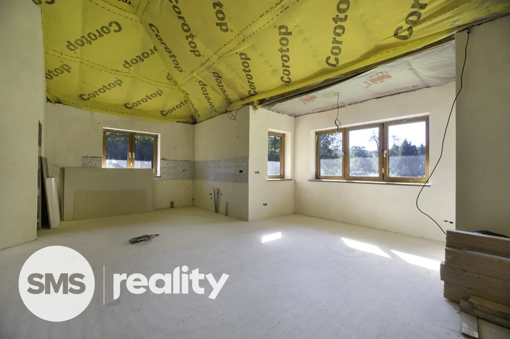 Dům působí moderním, funkčním dojmem. Koupě představuje ideální příležitost pro ty, kteří hledají dům na klidném místě v přírodě s možností dokončení dle vlastních představ.