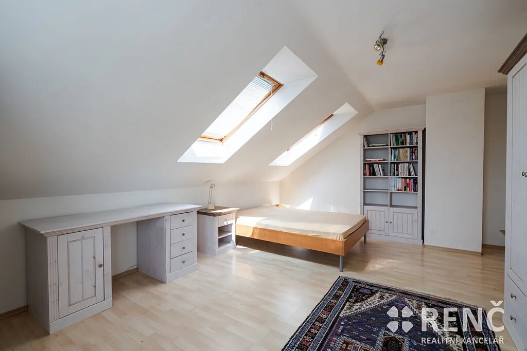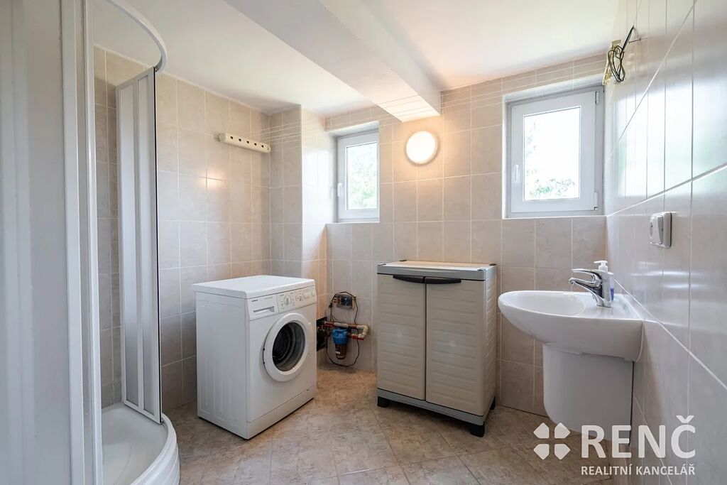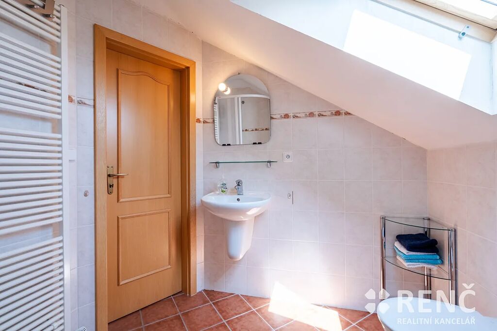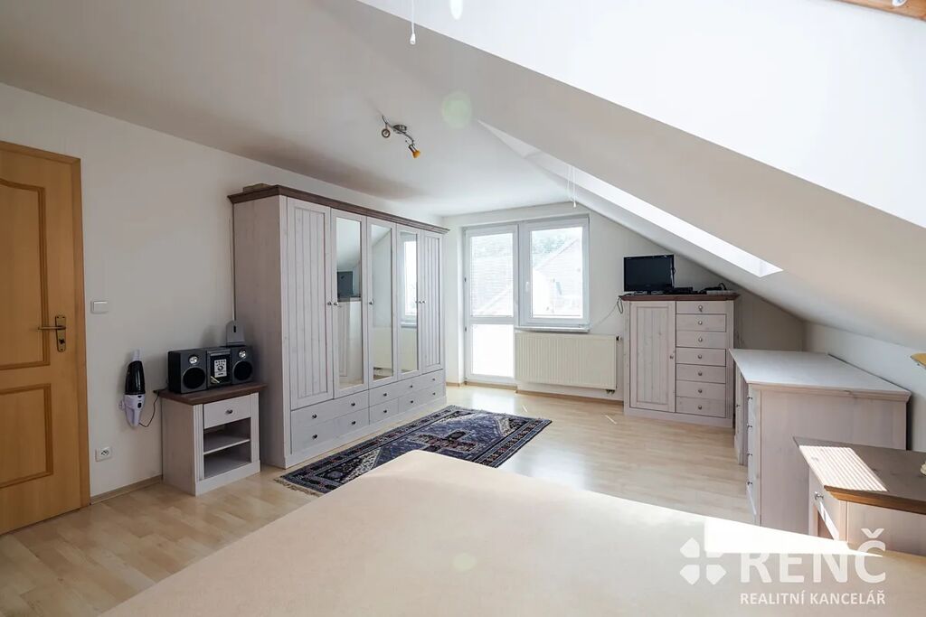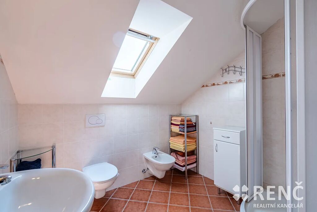 K prodeji nabízíme samostatně stojící, třípodlažní rodinný dům s garáží a mírně svažitou zahradou. Prostorný rodinný dům má dvě obytná podlaží a suterén s technickými místnostmi. Dům má čtyři samostatné pokoje, tři koupelny, obývací pokoj s kuchyňským koutem, terasu orientovanou do ulice, balkón v podkroví, v suterénu dílnu, sklad a garáž. Součástí vybavení je kuchyňská linka včetně spotřebičů, zařizovací předměty v koupelnách atp. Pozemek okolo domu je travnatý, v zahradě domu je umístěna zděná stavba kůlny, u domu je rovněž základ terasy. Zahrada je mírně svažitá, z části osázená dřevinami. Na pozemek je přístup z ulice i ze zahrady zadní bránou. Zděný rodinný dům se sedlovou střechou byl postaven, kolaudován a užíván od roku 2005, je ve velmi dobrém stavu, je možné jej ihned obývat. Dispozice domu: Vstupní přízemí (I.NP) o celkové ploše 72 m2: schodiště a vstupní předsíň 6 m2, dílna 25 m2, sklad 16 m2, sklad 2,4 m2, koupelna 4 m2, WC 1 m2, garáž 17 m2. Obytné patro domu (II.NP) o celkové ploše 72 m2: obývací pokoj 34 m2, kuchyňský kout 7 m2, pokoj 11 m2, koupelna 3,8 m2, WC 1,2 m2, schodiště a chodba 10 m2, venkovní terasa přístupná z OP. Obytné podkroví domu (III.NP) o celkové ploše 72 m2: ložnice 15 m2, ložnice s balkonem 14 m2, ložnice s balkonem 23 m2, koupelna včetně WC 7 m2, komora 1,3 m2, schodiště a chodba 11 m2, balkon. Výměry: Celková vnitřní užitná plocha domu (plocha všech místností): 216 m2 m². Pozemek celkem: 545 m², z toho zastavěná plocha 95 m² a zahrada 450 m². Konstrukce, vybavení a technologie: Svislé stavební konstrukce jsou zděné – tvarovky Ytong, na obvodové konstrukci je rovněž zateplovací systém tl. 7 cm, stropy z litého betonu, konstrukce krovu dřevěná, izolace střechy minerální vatou, krytina keramická, vše z roku 2005. Topení v domě je ústřední plynové, plynový kotel & zásobník na teplou vodu. Na domě jsou umístěny rovněž solární panely pro výrobu el. energie spotřebovávané v domě. Technologie i stavební prvky byly instalovány v době výstavby a kolaudace, tedy v roce 2005, stáří stavby 20 let. Veškerá technická dokumentace je k dispozici v RK. Podlahy plovoucí a keramické, schodiště betonové s keramickou dlažbou, vnitřní zárubně obložkové a dveřní křídla dřevěné dýhované, okna a venkovní dveře plastová včetně žaluzií, vrata do garáže v suterénu plechová výklopná, střešní okna Velux dřevěná, součástí jsou veškerá stropní svítidla, kuchyňská linka včetně kuchyňských spotřebičů (el. trouba, myčka, varná deska, odsavač par, mikrovlnná trouba, lednice & mrazák). Nemovitost je vybavena nábytkem, který lze ponechat po dohodě novému vlastníkovi. Dům se nachází nedaleko centra obce Podolí, parkování je možné před domem na ulici nebo na pozemku. Dům je ihned volný k nastěhování. V případě zájmu je možné nemovitost použít jako zástavu pro hypoteční úvěr.