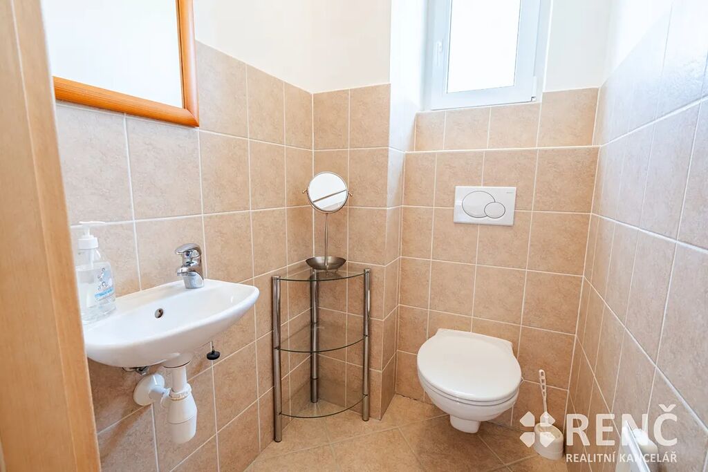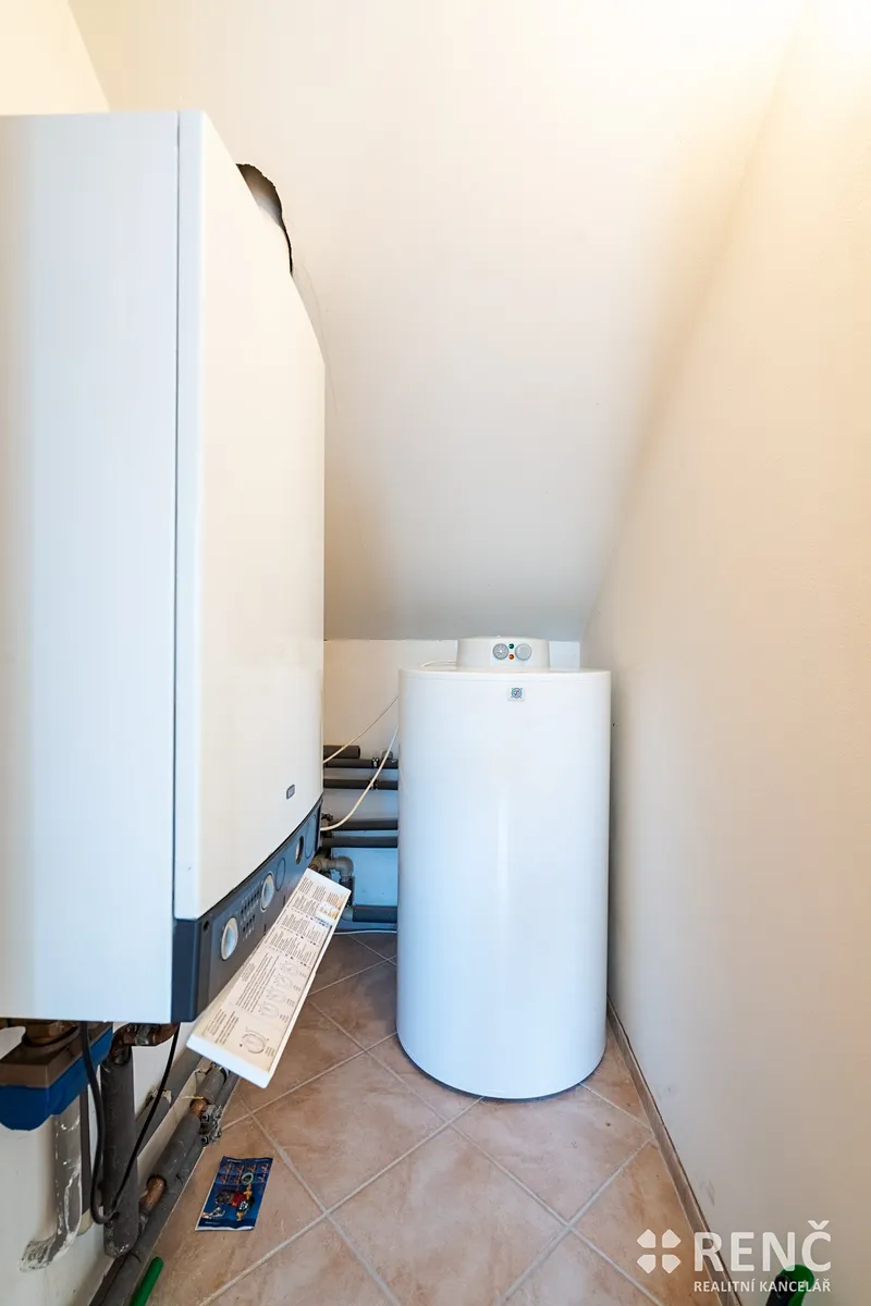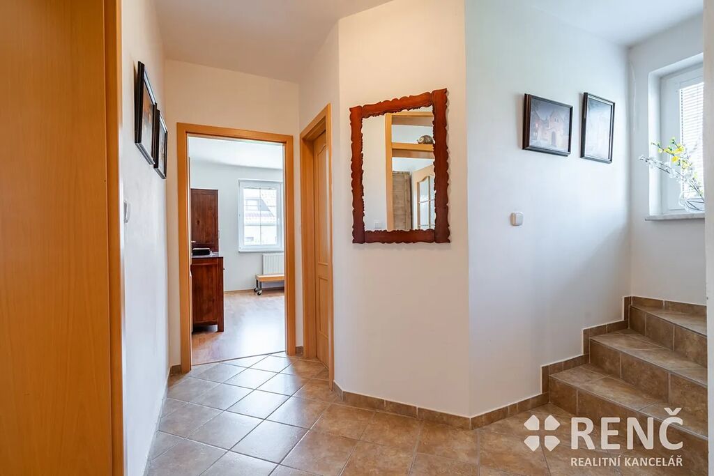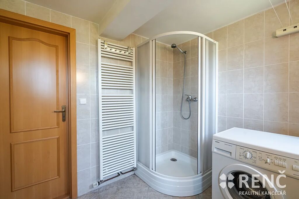 K prodeji nabízíme samostatně stojící, třípodlažní rodinný dům s garáží a mírně svažitou zahradou. Prostorný rodinný dům má dvě obytná podlaží a suterén s technickými místnostmi. Dům má čtyři samostatné pokoje, tři koupelny, obývací pokoj s kuchyňským koutem, terasu orientovanou do ulice, balkón v podkroví, v suterénu dílnu, sklad a garáž. Součástí vybavení je kuchyňská linka včetně spotřebičů, zařizovací předměty v koupelnách atp. Pozemek okolo domu je travnatý, v zahradě domu je umístěna zděná stavba kůlny, u domu je rovněž základ terasy. Zahrada je mírně svažitá, z části osázená dřevinami. Na pozemek je přístup z ulice i ze zahrady zadní bránou. Zděný rodinný dům se sedlovou střechou byl postaven, kolaudován a užíván od roku 2005, je ve velmi dobrém stavu, je možné jej ihned obývat. Dispozice domu: Vstupní přízemí (I.NP) o celkové ploše 72 m2: schodiště a vstupní předsíň 6 m2, dílna 25 m2, sklad 16 m2, sklad 2,4 m2, koupelna 4 m2, WC 1 m2, garáž 17 m2. Obytné patro domu (II.NP) o celkové ploše 72 m2: obývací pokoj 34 m2, kuchyňský kout 7 m2, pokoj 11 m2, koupelna 3,8 m2, WC 1,2 m2, schodiště a chodba 10 m2, venkovní terasa přístupná z OP. Obytné podkroví domu (III.NP) o celkové ploše 72 m2: ložnice 15 m2, ložnice s balkonem 14 m2, ložnice s balkonem 23 m2, koupelna včetně WC 7 m2, komora 1,3 m2, schodiště a chodba 11 m2, balkon. Výměry: Celková vnitřní užitná plocha domu (plocha všech místností): 216 m2 m². Pozemek celkem: 545 m², z toho zastavěná plocha 95 m² a zahrada 450 m². Konstrukce, vybavení a technologie: Svislé stavební konstrukce jsou zděné – tvarovky Ytong, na obvodové konstrukci je rovněž zateplovací systém tl. 7 cm, stropy z litého betonu, konstrukce krovu dřevěná, izolace střechy minerální vatou, krytina keramická, vše z roku 2005. Topení v domě je ústřední plynové, plynový kotel & zásobník na teplou vodu. Na domě jsou umístěny rovněž solární panely pro výrobu el. energie spotřebovávané v domě. Technologie i stavební prvky byly instalovány v době výstavby a kolaudace, tedy v roce 2005, stáří stavby 20 let. Veškerá technická dokumentace je k dispozici v RK. Podlahy plovoucí a keramické, schodiště betonové s keramickou dlažbou, vnitřní zárubně obložkové a dveřní křídla dřevěné dýhované, okna a venkovní dveře plastová včetně žaluzií, vrata do garáže v suterénu plechová výklopná, střešní okna Velux dřevěná, součástí jsou veškerá stropní svítidla, kuchyňská linka včetně kuchyňských spotřebičů (el. trouba, myčka, varná deska, odsavač par, mikrovlnná trouba, lednice & mrazák). Nemovitost je vybavena nábytkem, který lze ponechat po dohodě novému vlastníkovi. Dům se nachází nedaleko centra obce Podolí, parkování je možné před domem na ulici nebo na pozemku. Dům je ihned volný k nastěhování. V případě zájmu je možné nemovitost použít jako zástavu pro hypoteční úvěr.