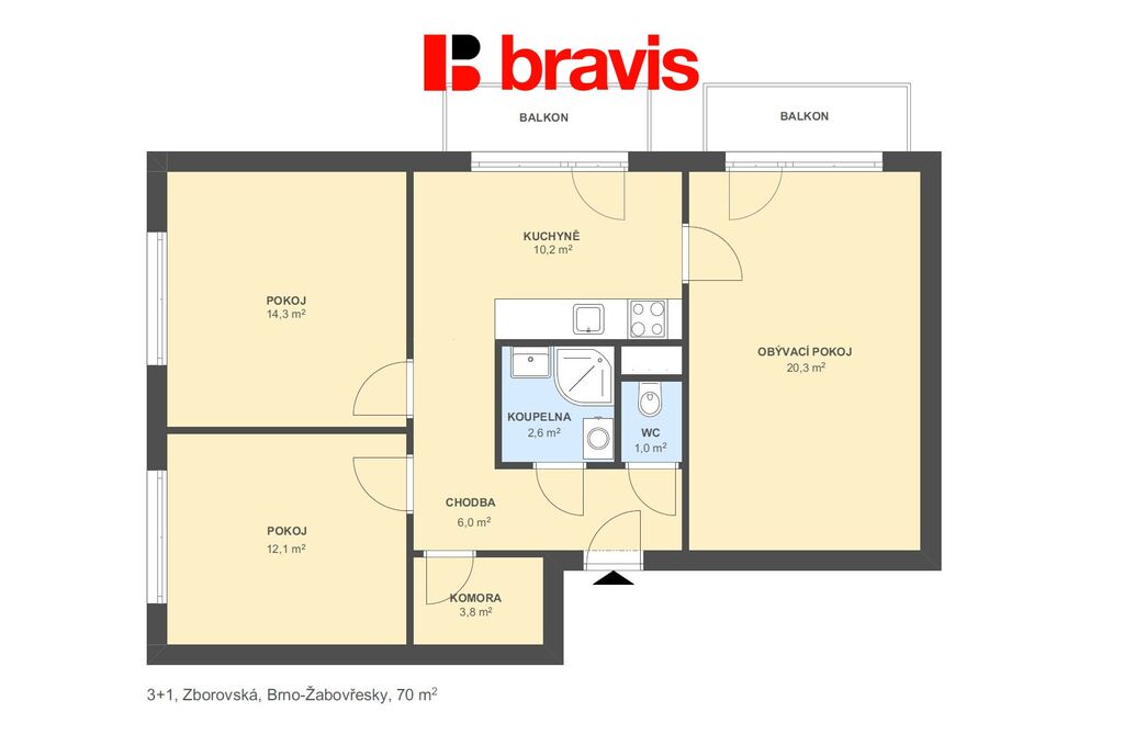 Prodej bytu 3+1, Brno, Zborovská, 75 m2