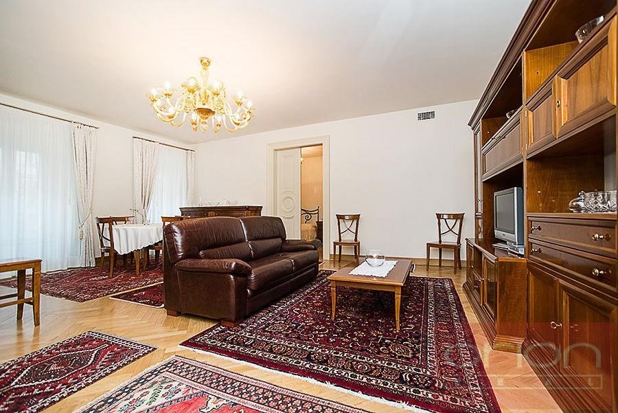 Nabízíme k pronájmu exkluzivní, plně zařízený byt 3+kk o rozloze 96 m², situovaný v 1. patře zrekonstruovaného činžovního domu s výtahem, soukromou zahradou, vyhřívaným bazénem a podzemními garážemi ve vyhledávané lokalitě Praha 2 - Vinohrady. Dispozice bytu zahrnuje vstupní halu,prostorný obývací pokoj s plně vybavenou kuchyní (včetně spotřebičů),dvě ložnice,dvě koupelny (jedna s vanou, druhá se sprchovým koutem),dvě toalety. Byt se nachází ve velmi atraktivní a vyhledávané lokalitě pražských Vinohrad, s výbornou občanskou vybaveností a skvělou dopravní dostupností – stanice metra a tramvajové zastávky jsou jen pár kroků od domu, autobusová zastávka přímo před domem.