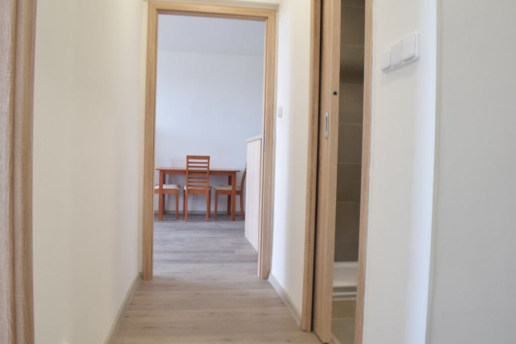 Byt se nabízí částečně vybavený. Kuchyně disponuje indukční varnou deskou, troubou a digestoří. Je tam připraveno místo na pračku případně myčku. Byt je nový po kompletní rekonstrukci Obývací část je spojený s kuchyňským koutem a disponuje jedním z balkonu. Druhý pokoj je neprůchozí a má také svůj vstup na další balkon s výhledem na Beskydy. Koupelna nabízí sprchový kout a je umístěna samostatně, stejně jako toaleta.