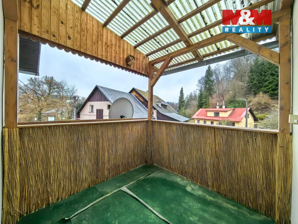 Vytápění bytu je možné buď elektrokotlem nebo krbovými kamny na dřevěné pelety. Ohřev vody zajišťuje bojler. K bytu náleží terasa. Uvedená cena je bez poplatků za energie. Platí se nájemné plus energie, vratná kauce a poplatek RK.