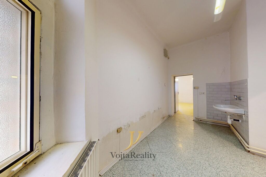 Interiér je v původním stavu a čeká na rekonstrukci. V bytě jsou plastová okna s dvojskly do ulice a dřevěná okna do vnitrobloku, podlahy tvoří kombinace PVC a původních parket. Velkou výhodou je přímý vstup do domu z ulice a také výtah, který zajišťuje pohodlný přístup.