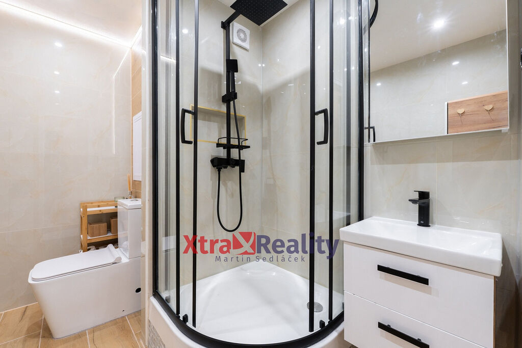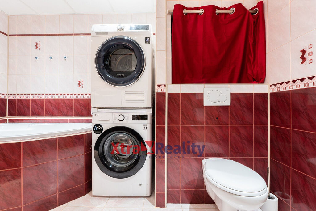 Zajisté Vás zaujme jeho netradiční rozloha a 2 samostatné koupelny (jedna se sprchovým koutem, umyvadlem a WC, druhá s rohovou vanou, 2 umyvadly a WC s dostatkem prostoru pro pračku a sušičku.
