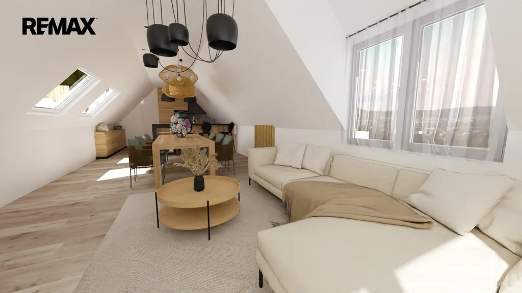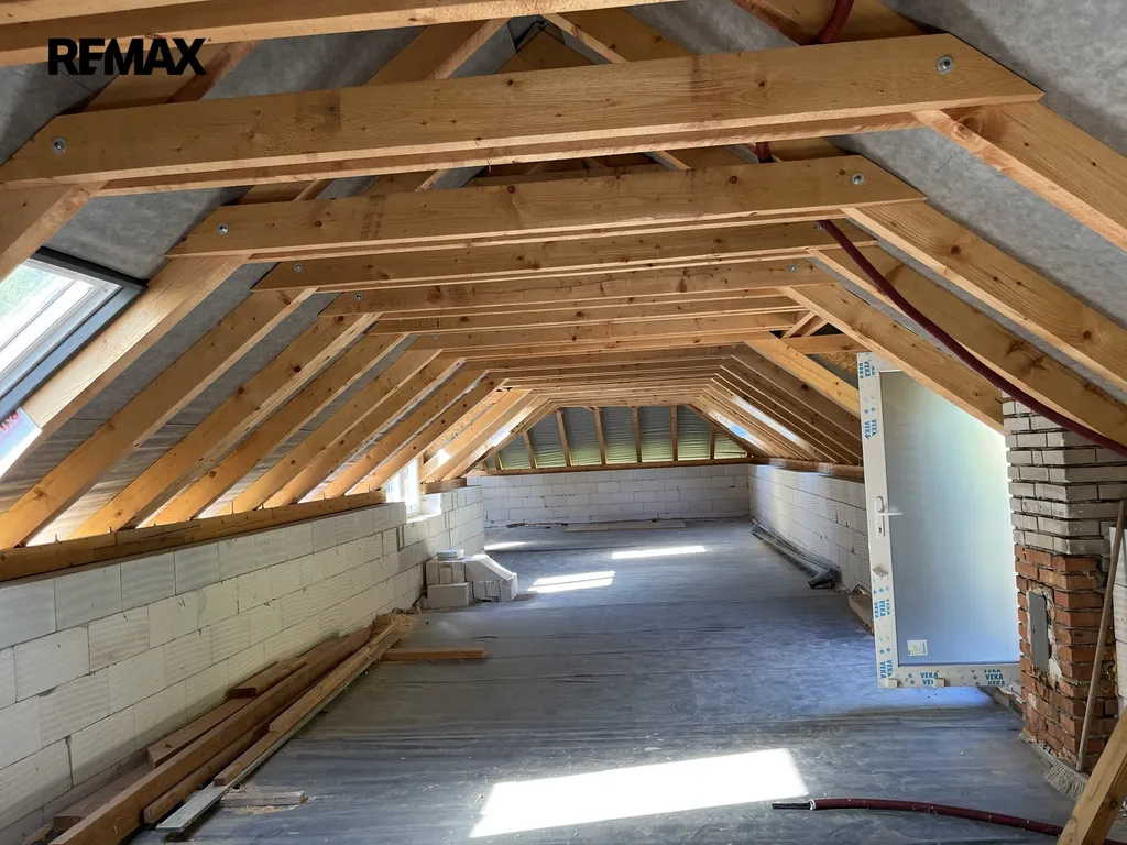 Byt se nachází v půdní vestavbě domu a disponuje novou střechou, novými okny a vlastním samostatným vstupem, což zajišťuje soukromí i komfort. V projektu je navržena dispozice 4+1, ale finální uspořádání si můžete navrhnout sami – a vytvořit si tak domov přesně na míru.