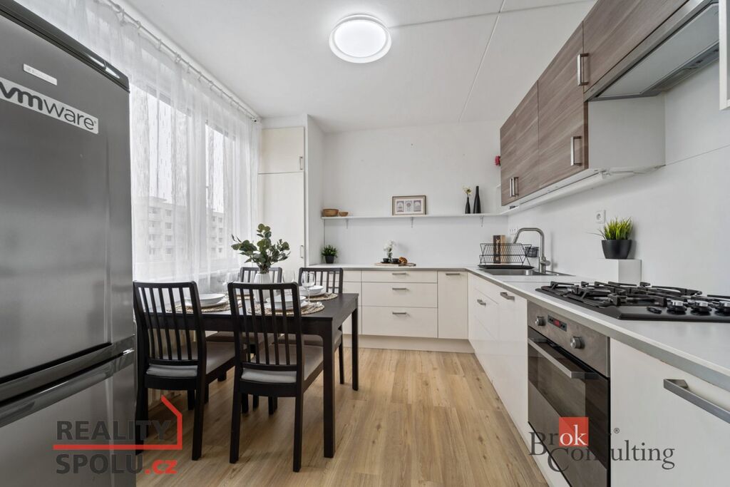 Byt se nachází ve 2. podlaží ve velmi dobře udržovaném panelovém domě s výtahem a prošel vkusnou částečnou rekonstrukcí zahrnující plastová okna, vybavenou kuchyň, koupelnu, oddělenou toaletou s prostorem pro pračku i sušičku, nové podlahy.