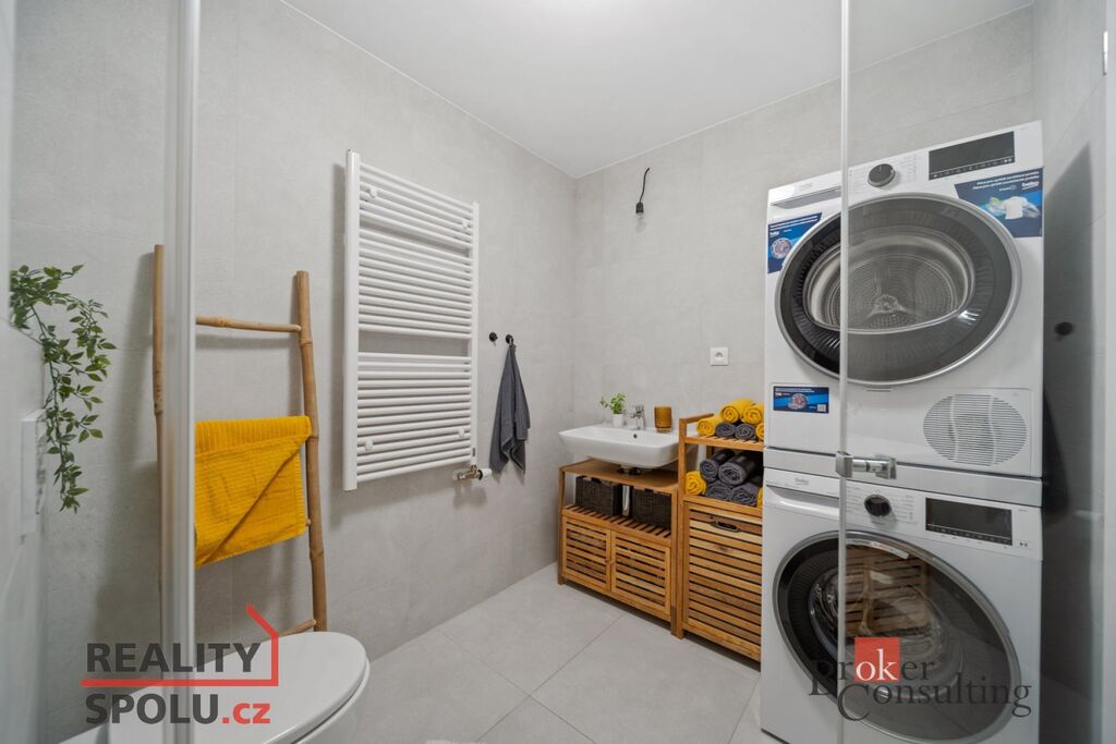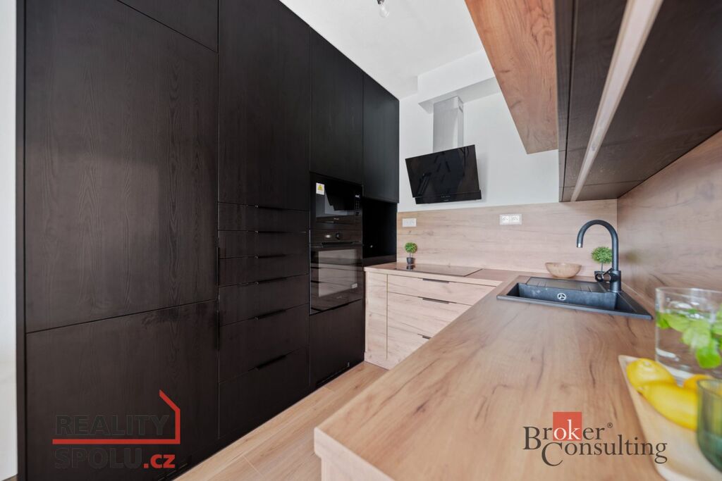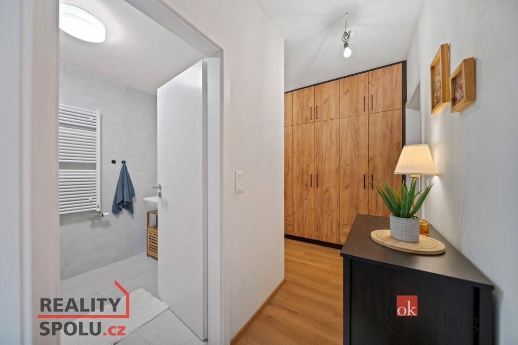 Už při vstupu vás zaujme luxusní kuchyně a vestavěné skříně na míru, které dodávají interiéru nadčasový styl a praktičnost. Každý detail je promyšlený – od vkusně navržené koupelny až po předokenní žaluzie, které zajišťují soukromí a příjemné klima v každém ročním období.