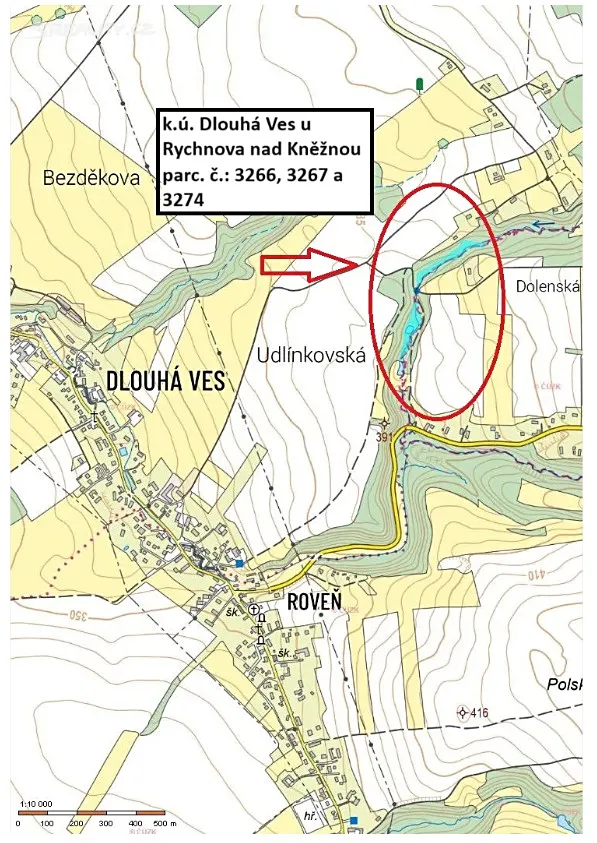 Prodávané parcely číslo 3266, 3267 a 3274 jsou vedeny na listu vlastnictví 145 pro katastrální území Dlouhá Ves u Rychnova nad Kněžnou. Jejich celková výměra činí 10.044 m2.