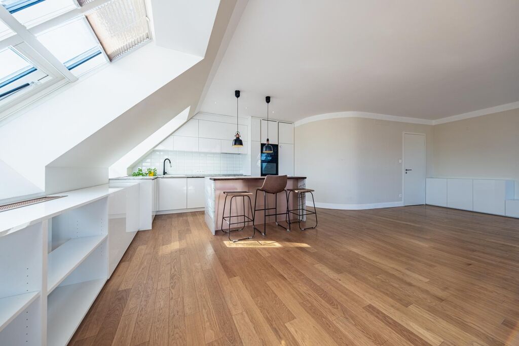 Nabízím k prodeji nádherný a prostorný byt 3+kk o velikosti 104 m, který vás okouzlí nejen svou atmosférou, ale především jedinečnou lokalitou. Byt vznikl jako půdní nástavba v roce 2017, takže splňuje veškeré nároky moderního bydlení od kvalitních stavebních materiálů a izolací až po komfortní klima zajištěné klimatizací. Díky tomu se jedná o bydlení s charakterem, které kombinuje kouzlo půdního prostoru s pohodlím současného standardu a můžeme ho tedy nazvat novostavbou.