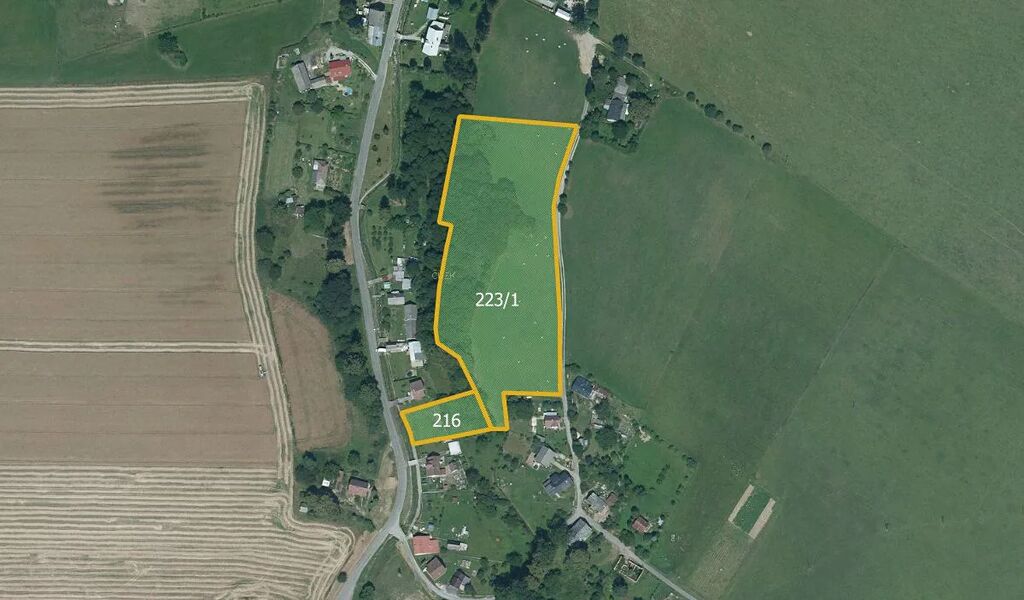 Vlastník prodává spoluvlastnictví ideální 1/3 a celková výměra prodávaného území je 6 121 m2. Z toho je dle katastru nemovitostí 5 611 m2 trvalý travní porost a 509 m2 zahrada.